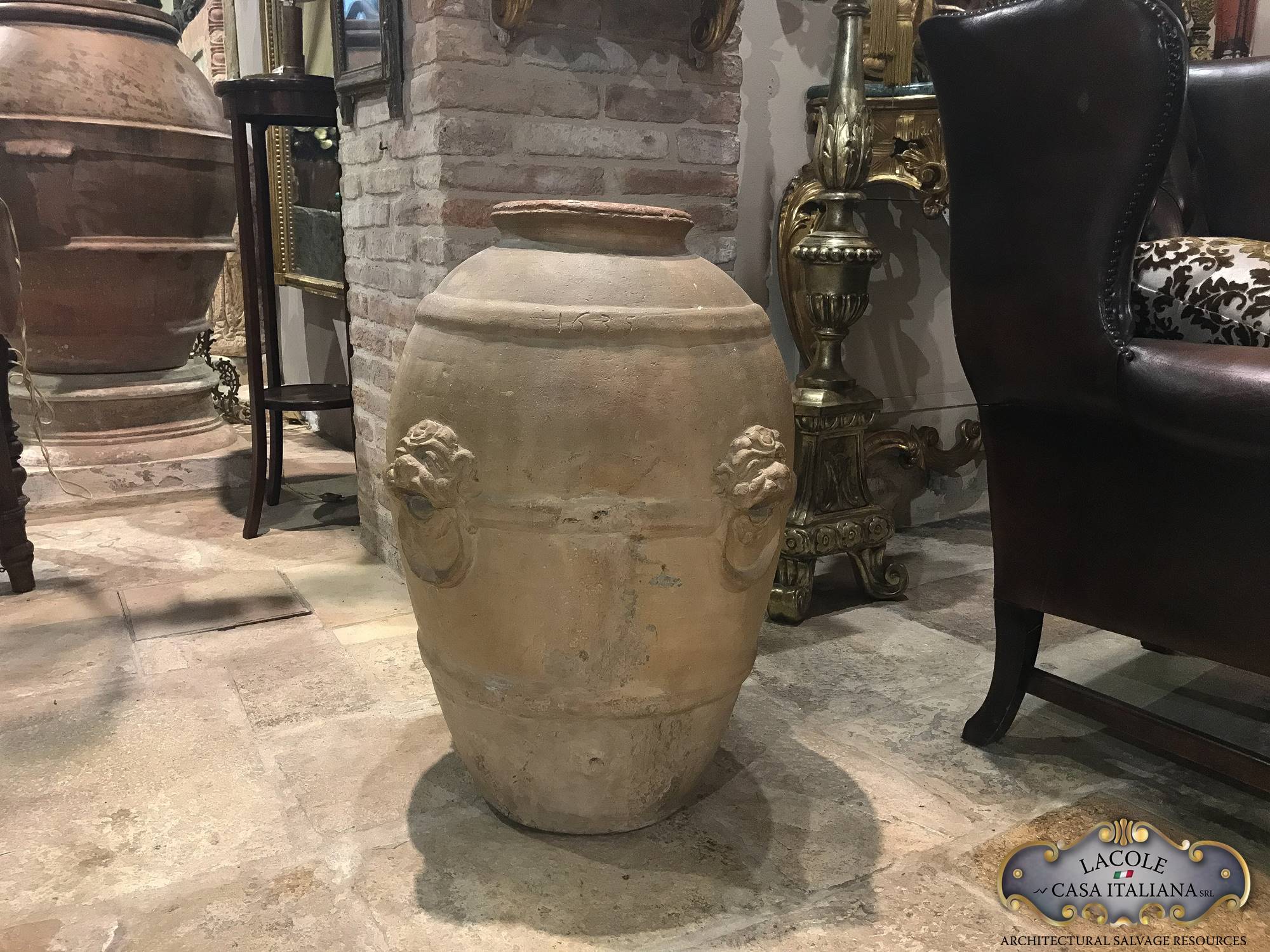 Little ancient terracotta jar, decorated with grotesque figures. It ‘also engraved with the date 1635. With the words ‘jar’ means a terracotta vase, worked by hand. In ancient times they were used for storing liquids, such as wine and oil. For their beauty, the jars have become precious objects to decorate the exteriors and interiors, giving a touch of originality to the rooms where they are placed.