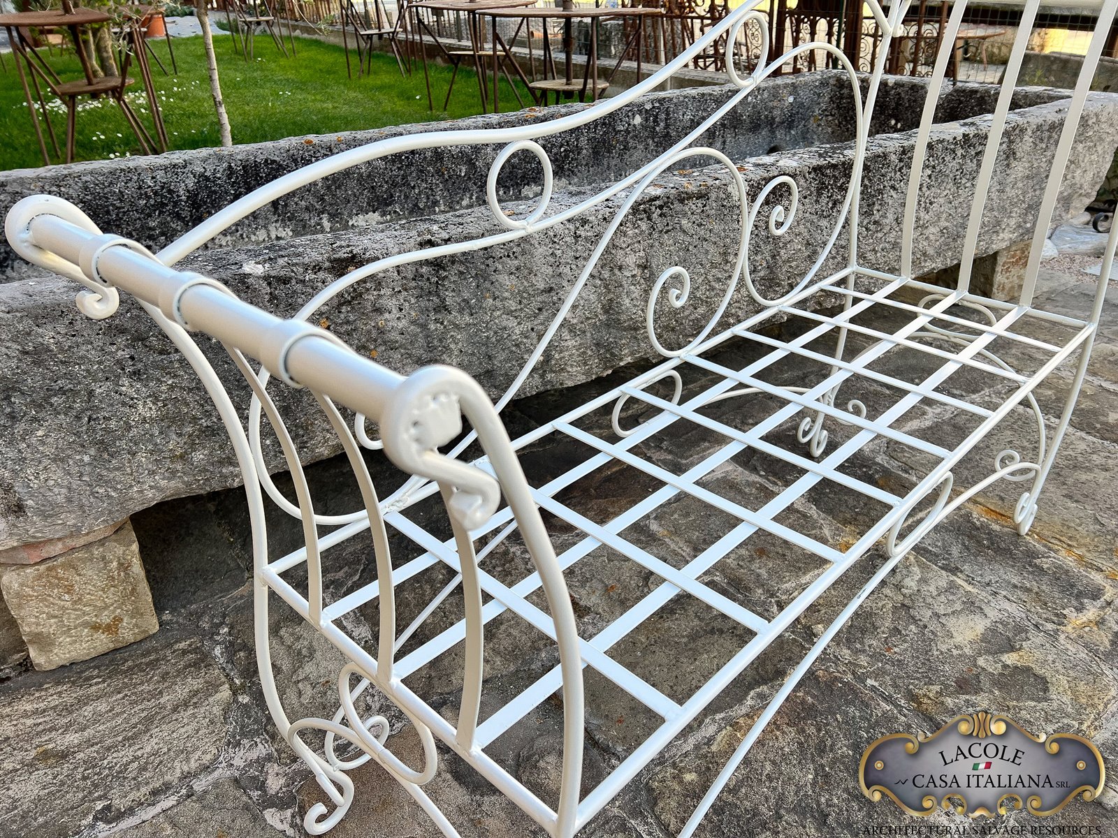 Panca in ferro realizzata artigianalmente e verniciata. Disponibilità su richiesta.
