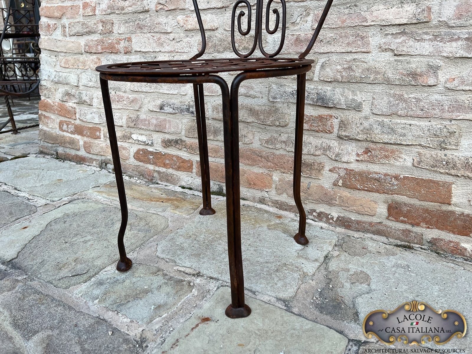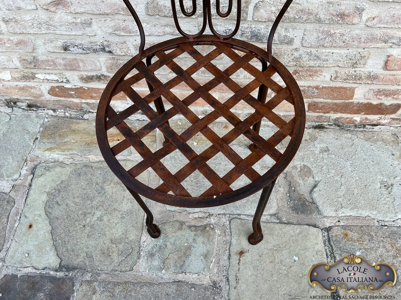 Sedie in ferro realizzate artigianalmente; finitura ruggine.