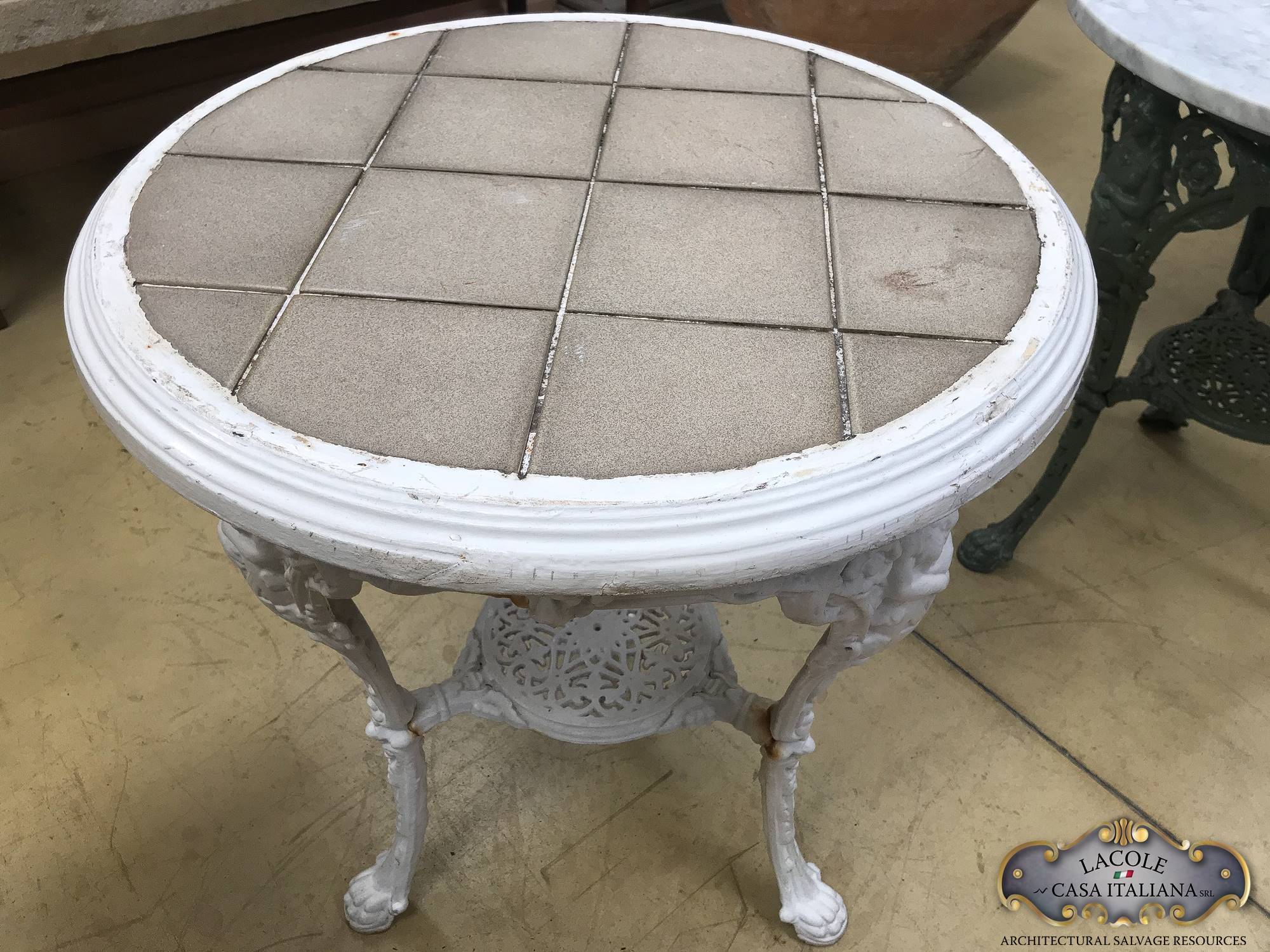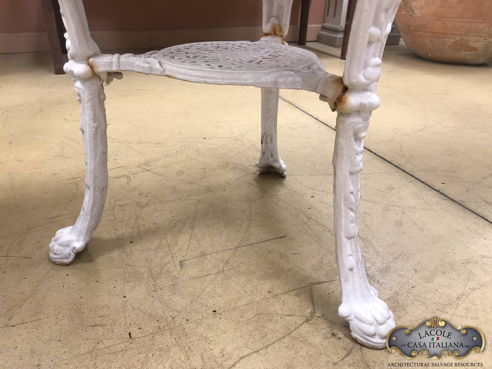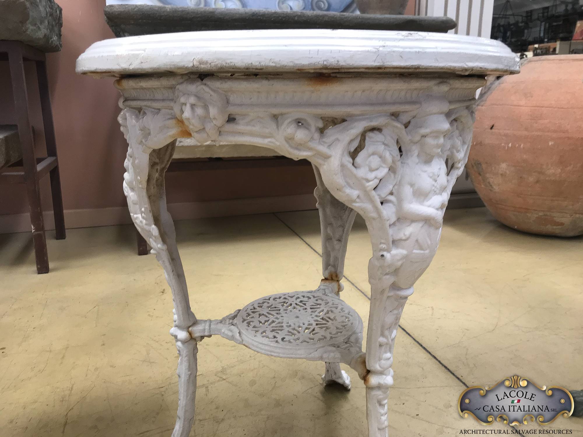 Tavolino in ghisa, con piano in marmo. Epoca prima metà del 1900.