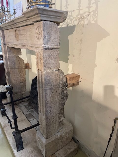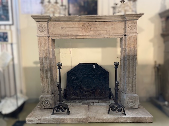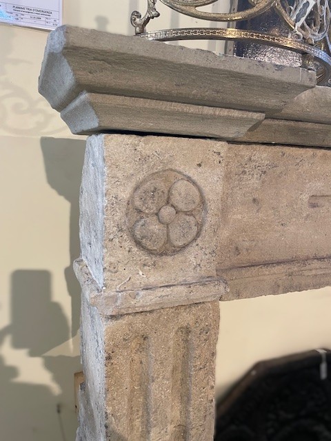 Camino antico in pietra con decori sul frontale e nei laterali