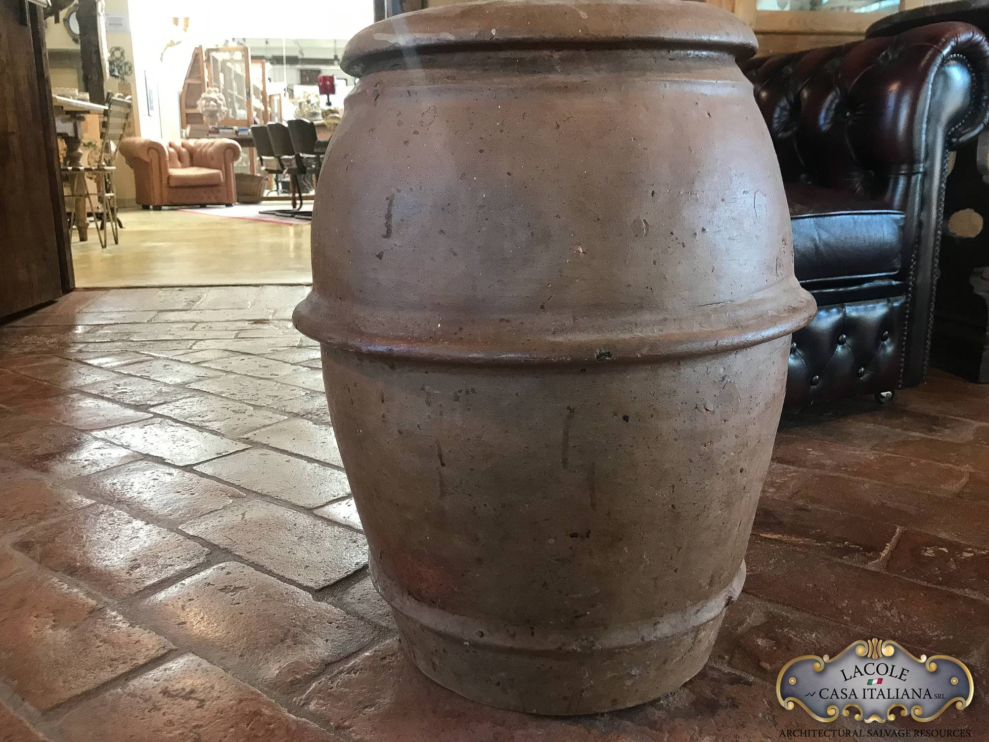Orcio antico in terracotta. L’apertura abbastanza grande ci fa pensare che questo orcio antico sia stato utilizzato per la conservazione di frumento o farina.