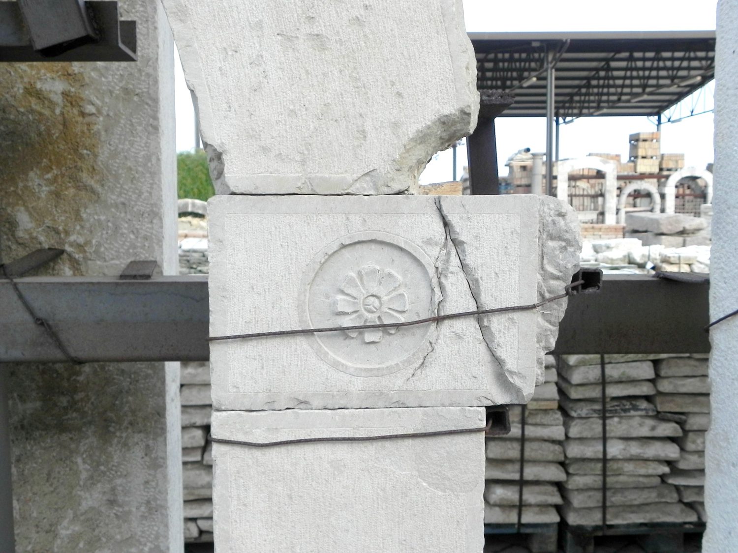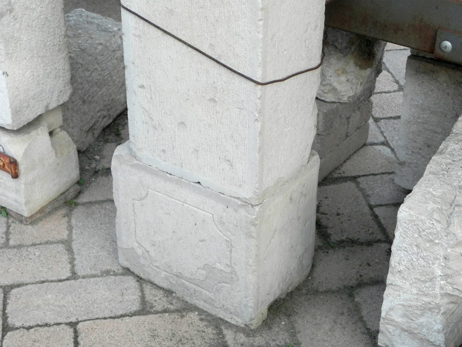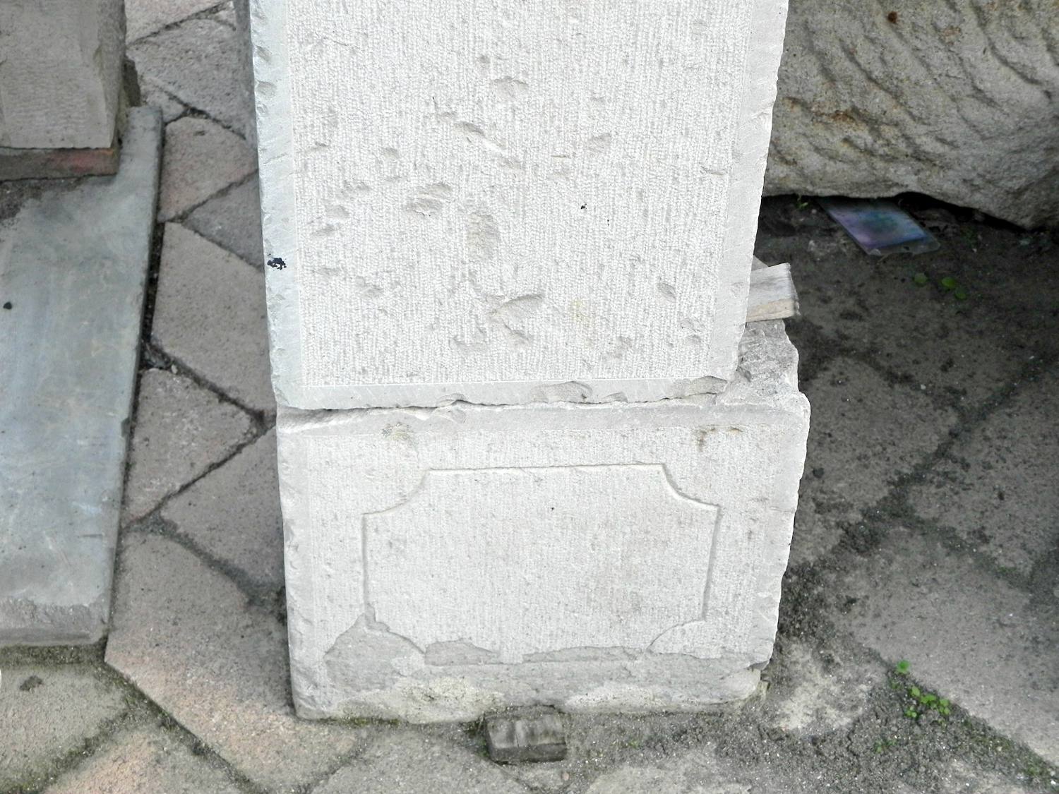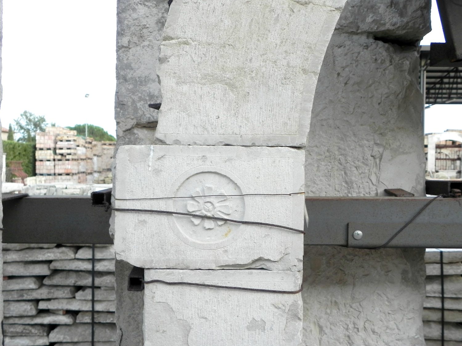 Portale antico POR015, in pietra chiata. La chiave di volta è decorata con un fiore scolpito e la data 1871.
