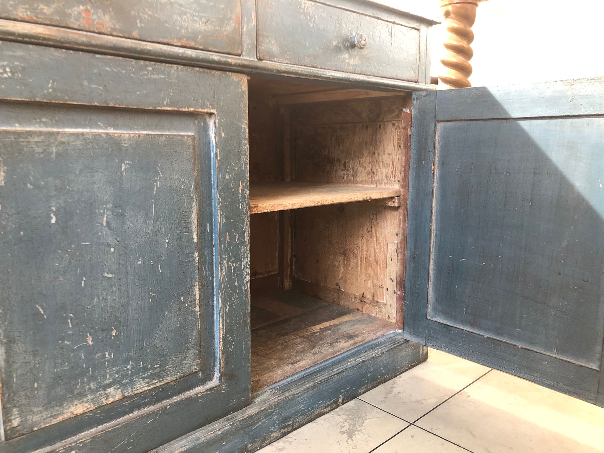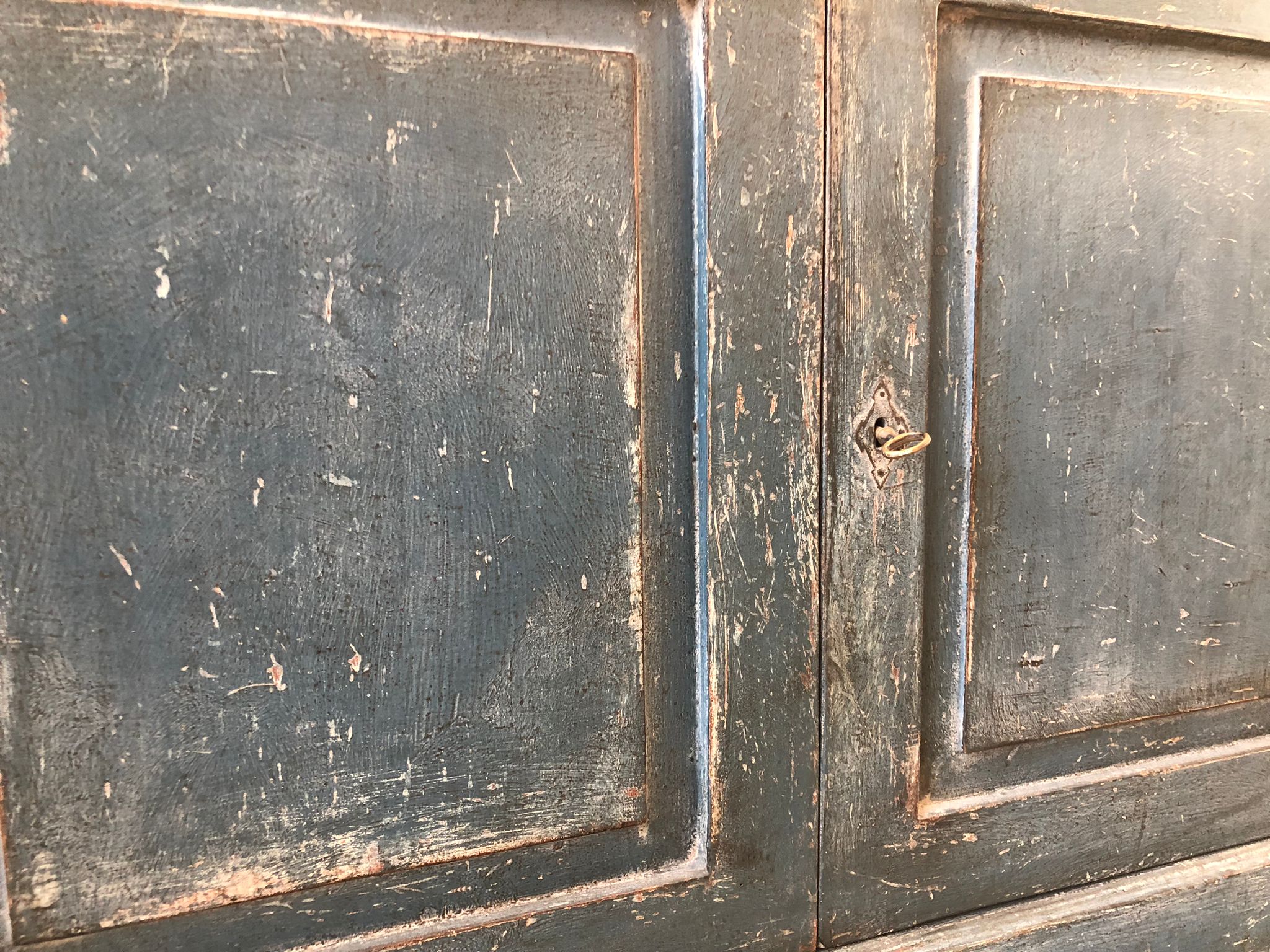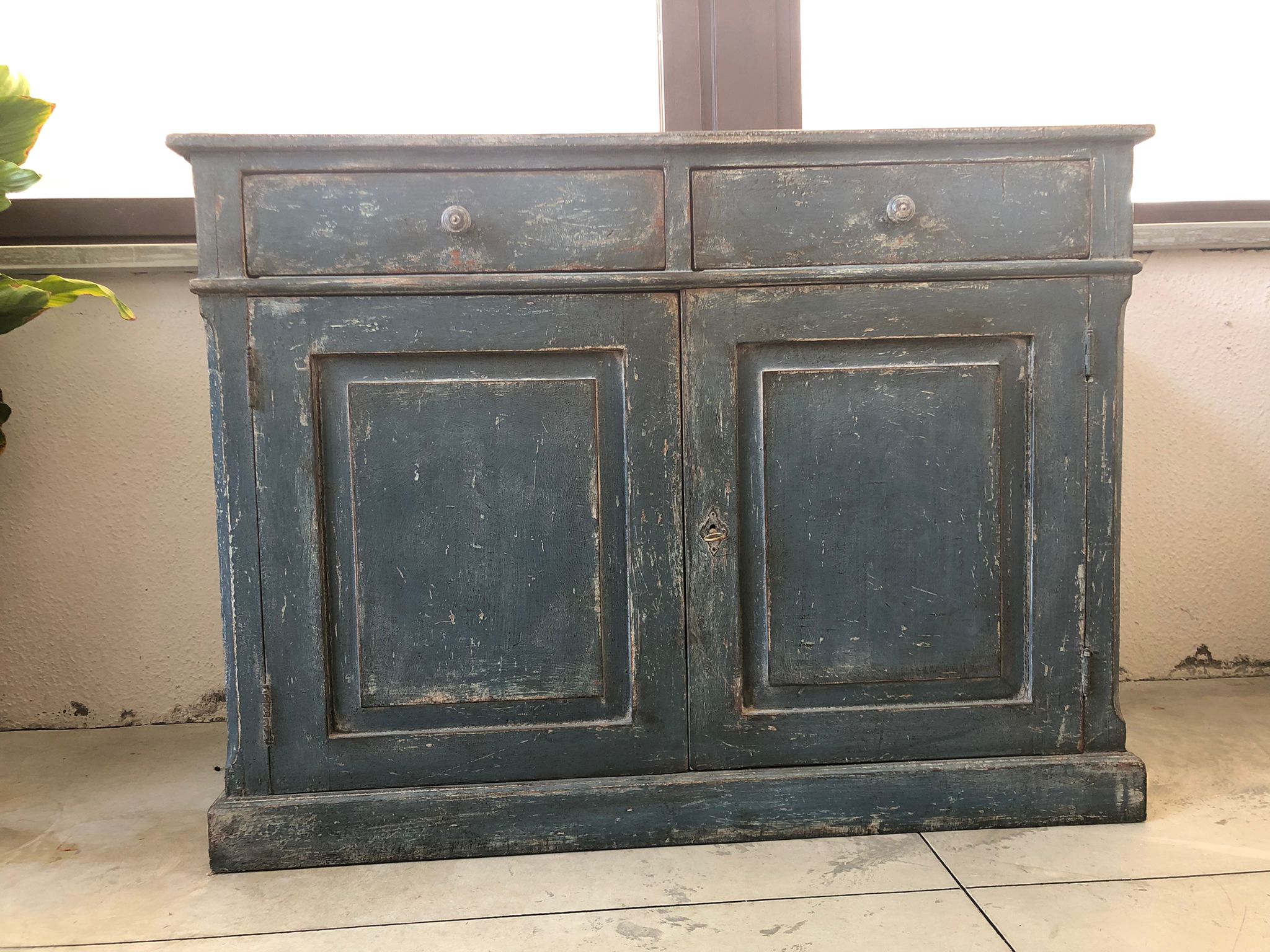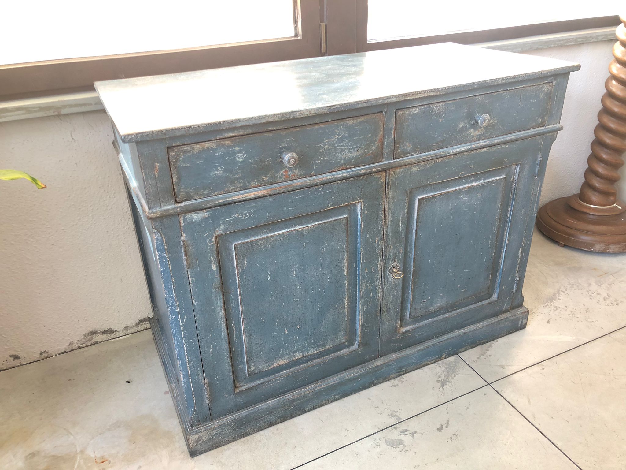 Credenzino in legno antico patinato a regola d’arte sui toni del carta da zucchero antico