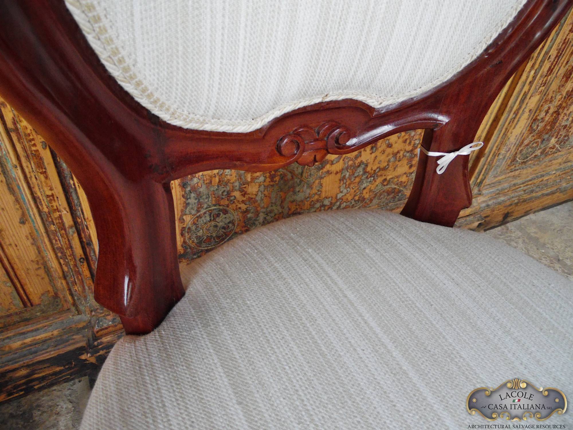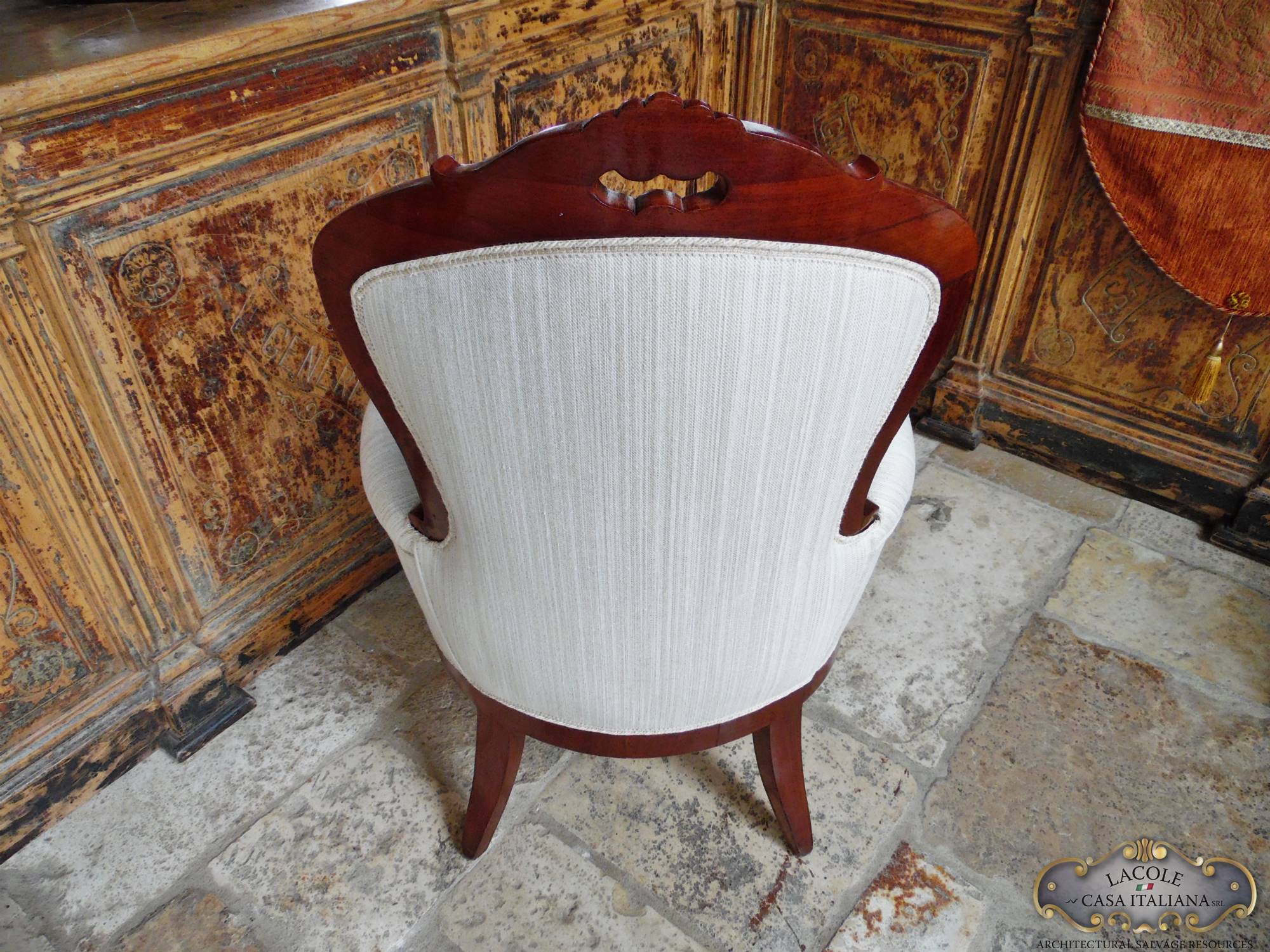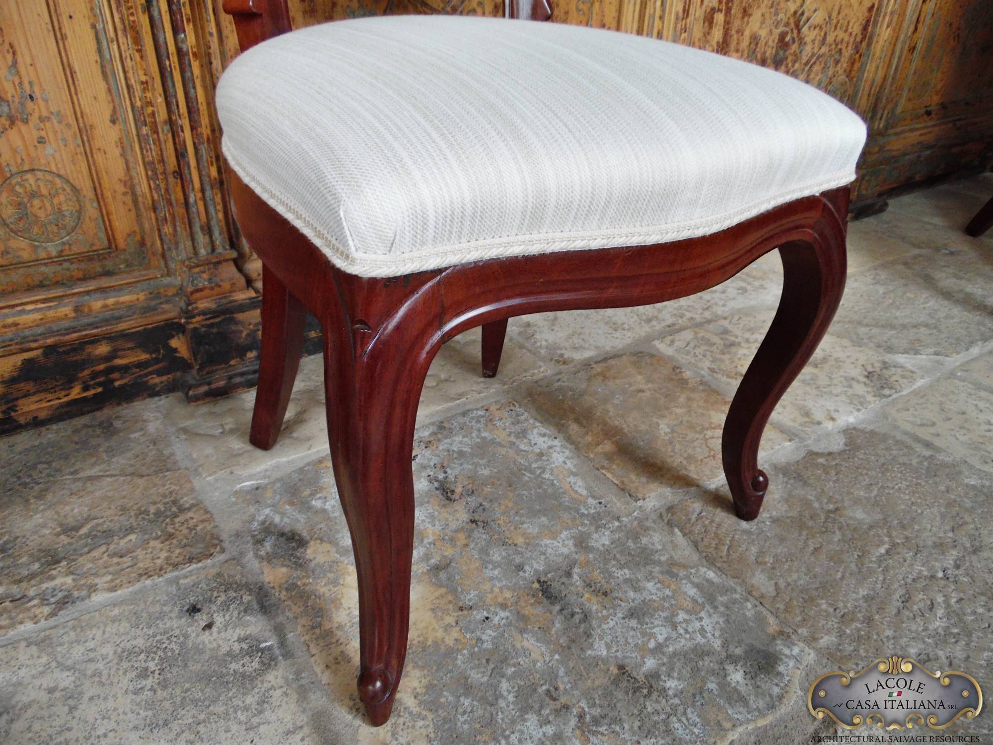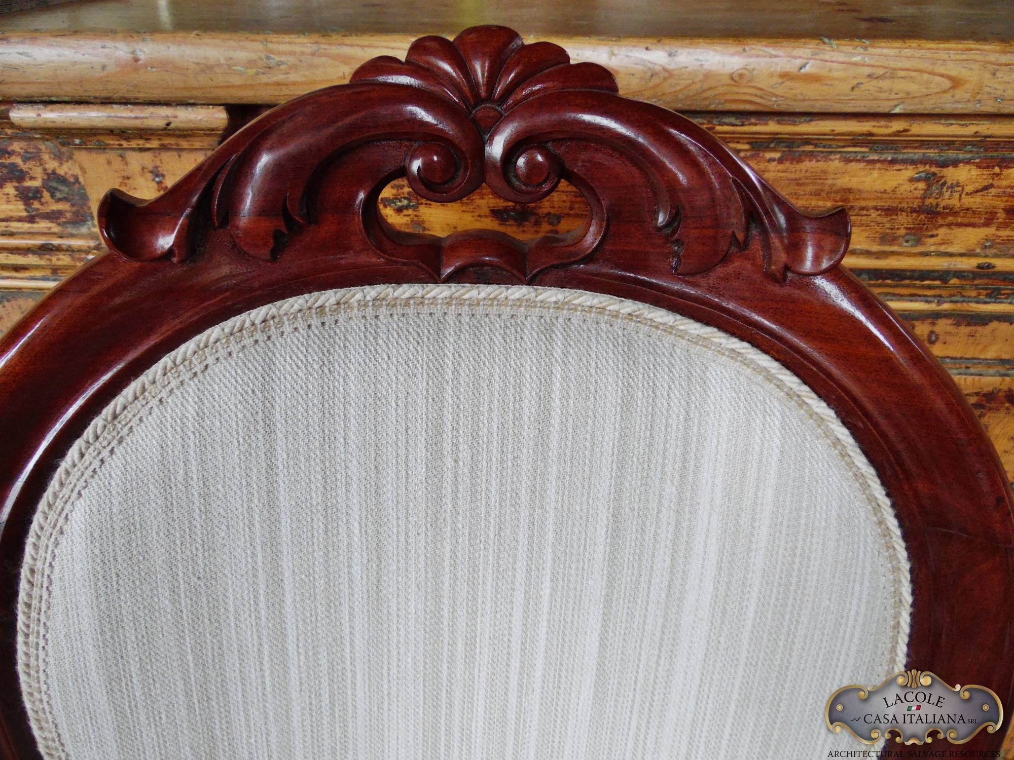 Salotto stile Luigi Filippo composto da poltrona e 4 sedie in mogano; tappezzeria di nuova manifattura in raso di contone