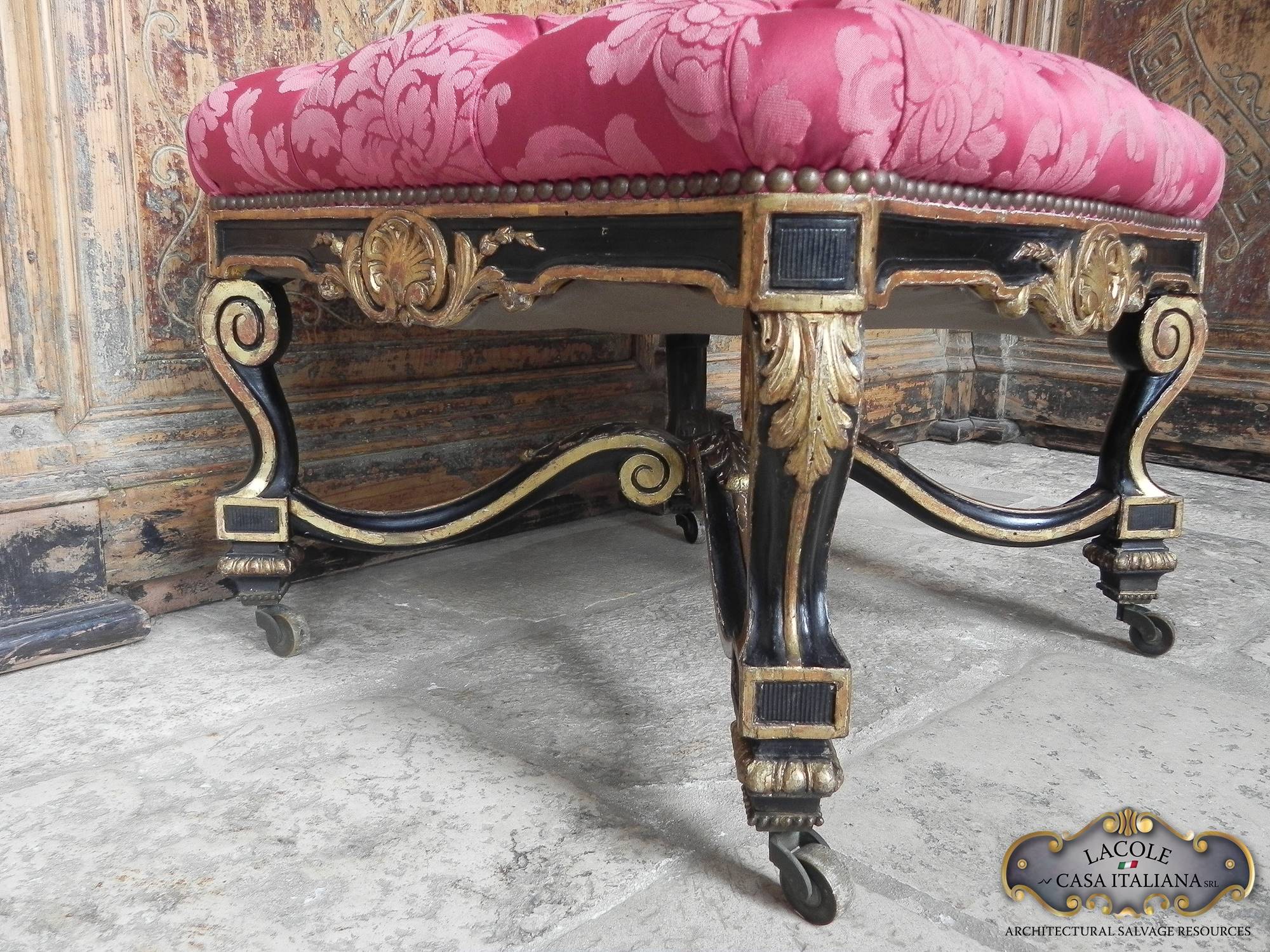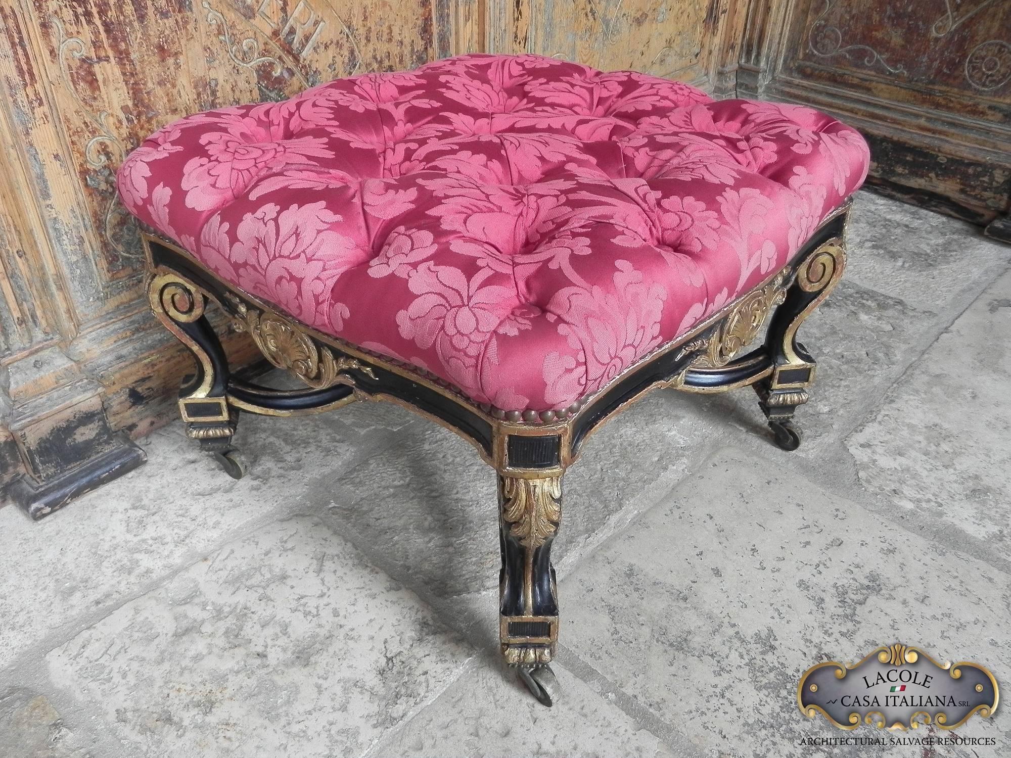 Poggiapiedi antico in legno ebanizzato.