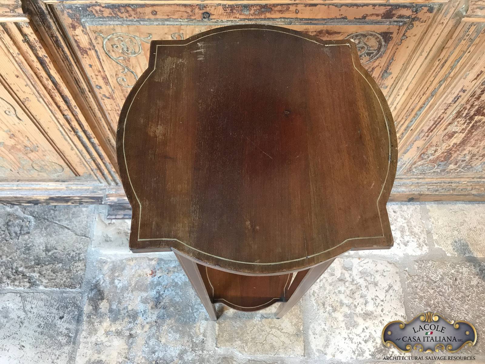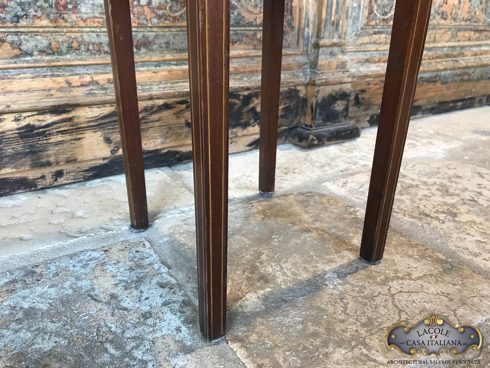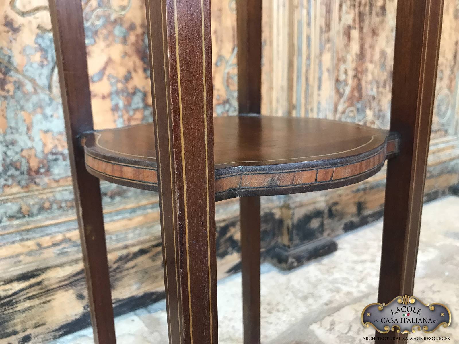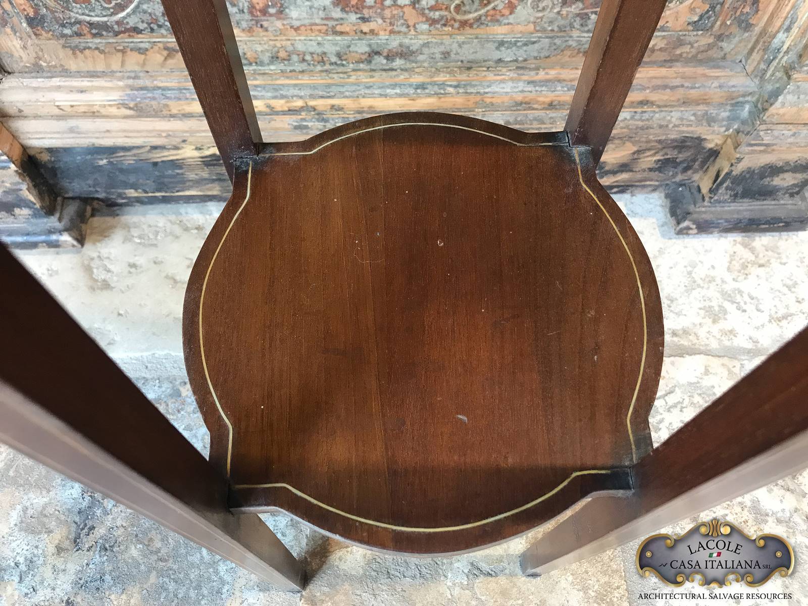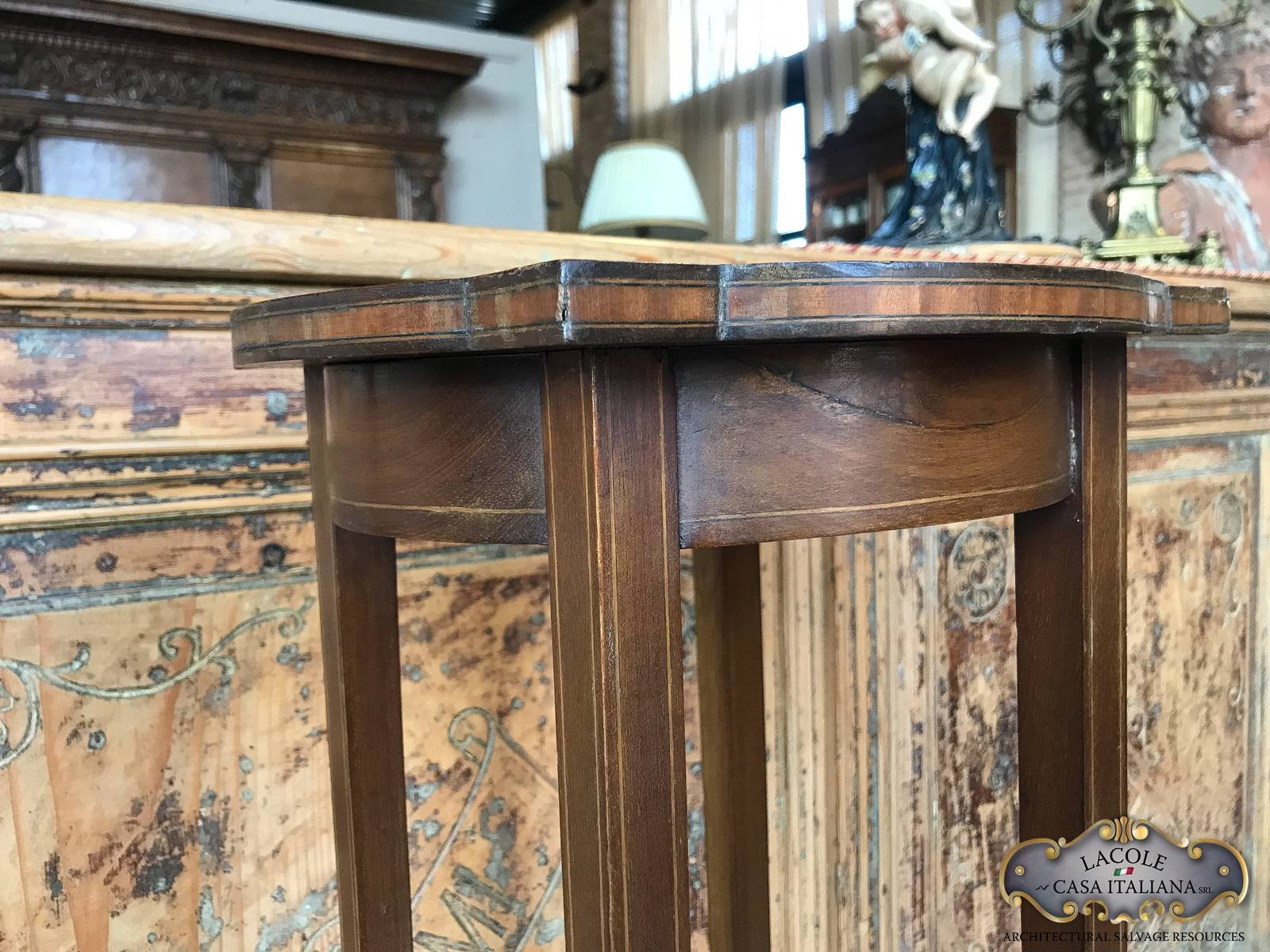 Tavolino antico in mogano filettato, epoca II metà del 1800.