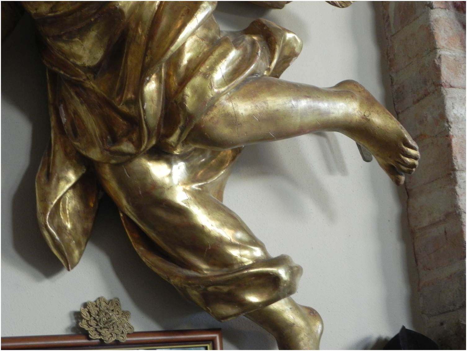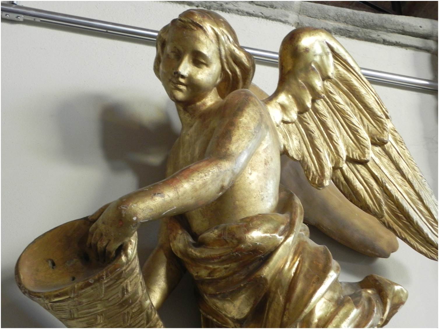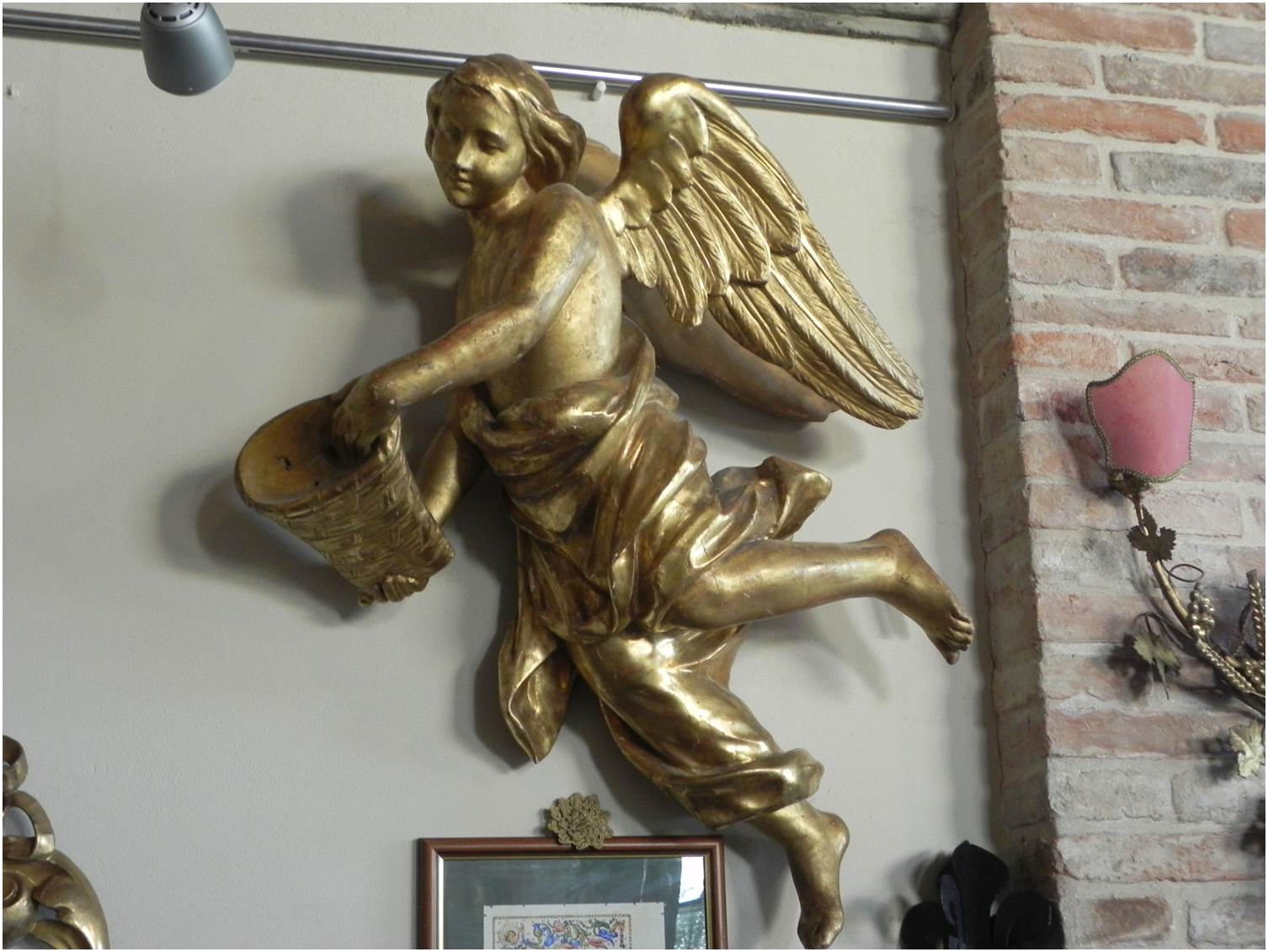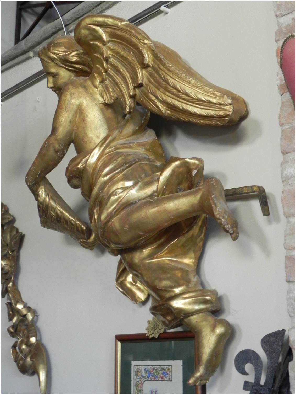 Antico angelo in legno intagliato e oro, epoca presunta fine 1700