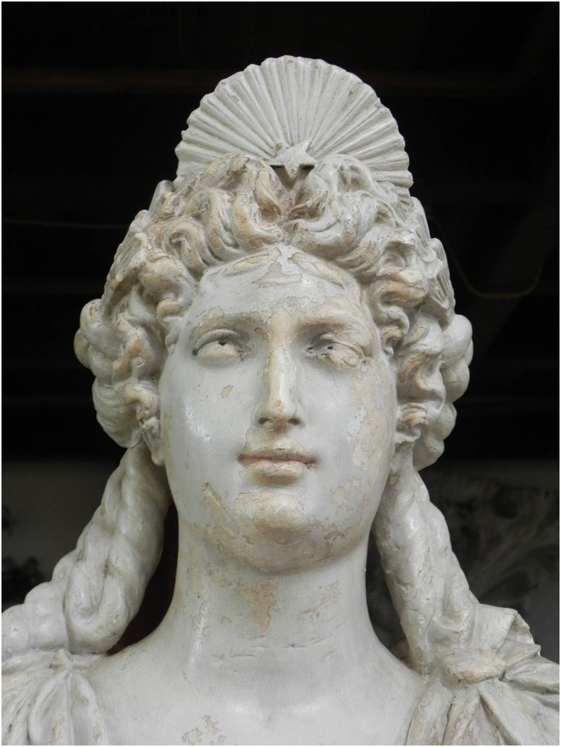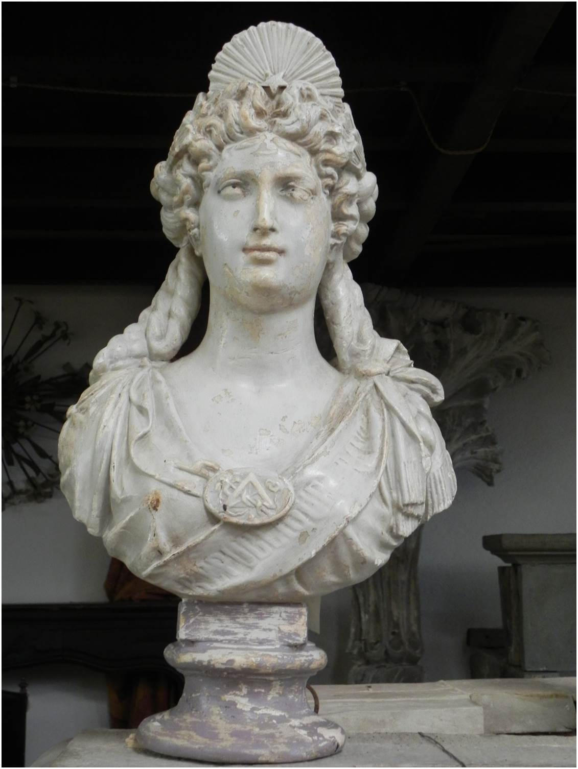 Antico busto di donna realizzato in gesso laccato.