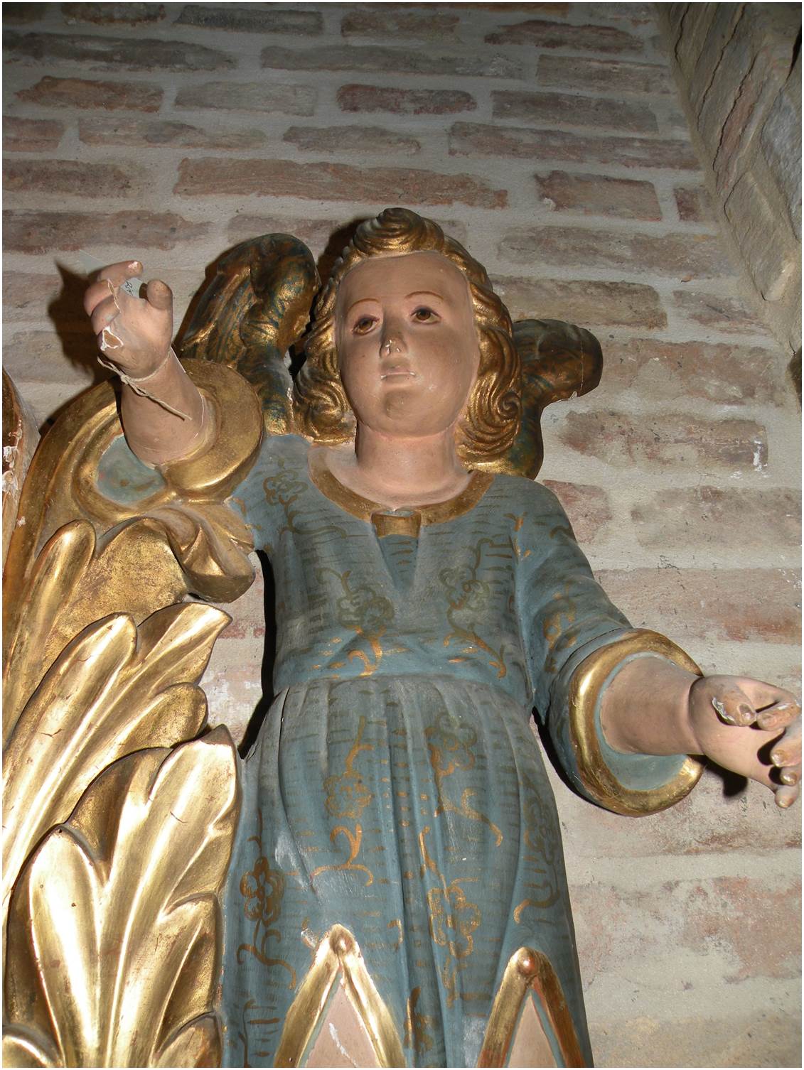 Coppia di sculture lignee raffiguranti angeli legno intagliato oro e lacche epoca presunta 700