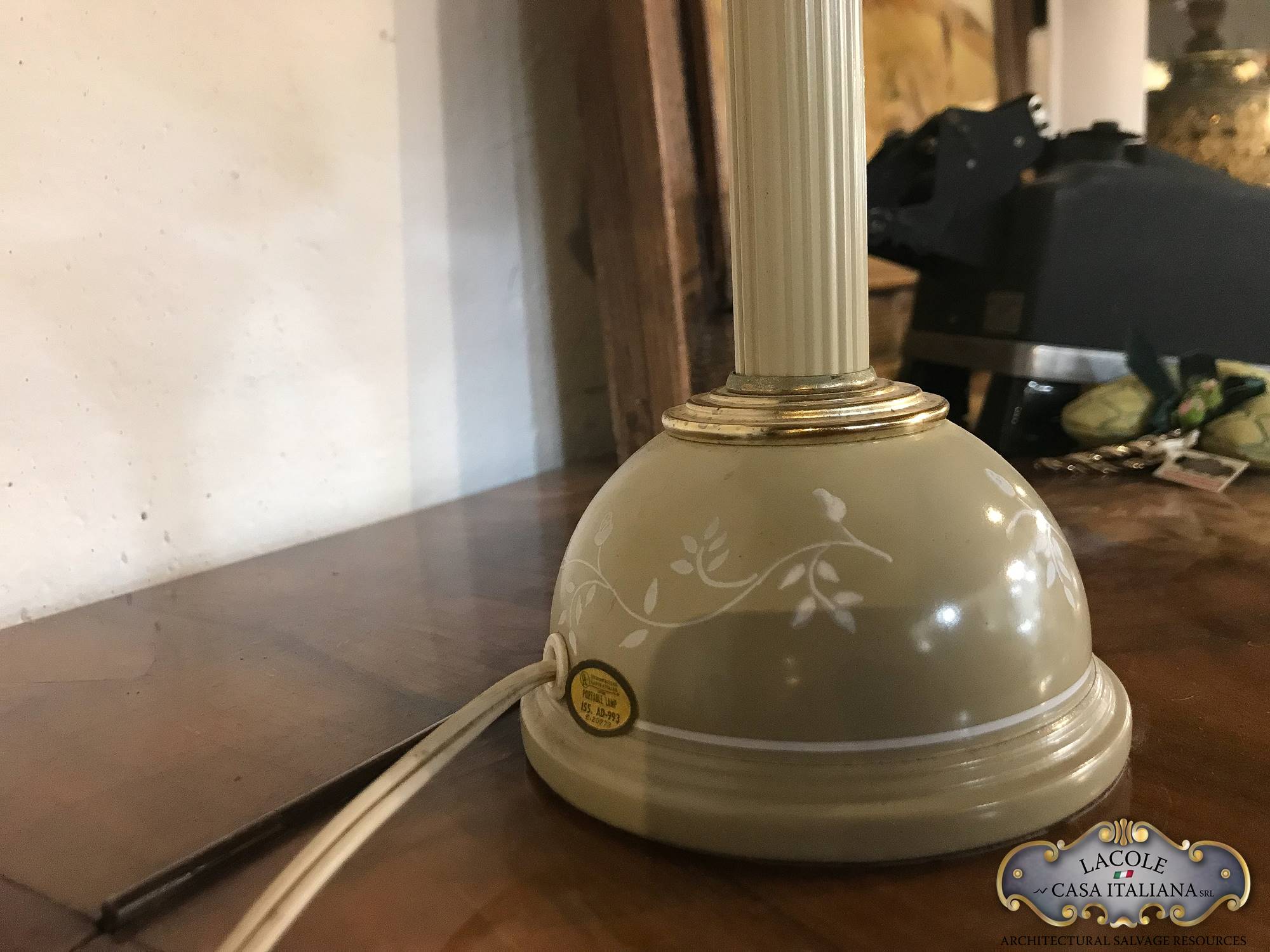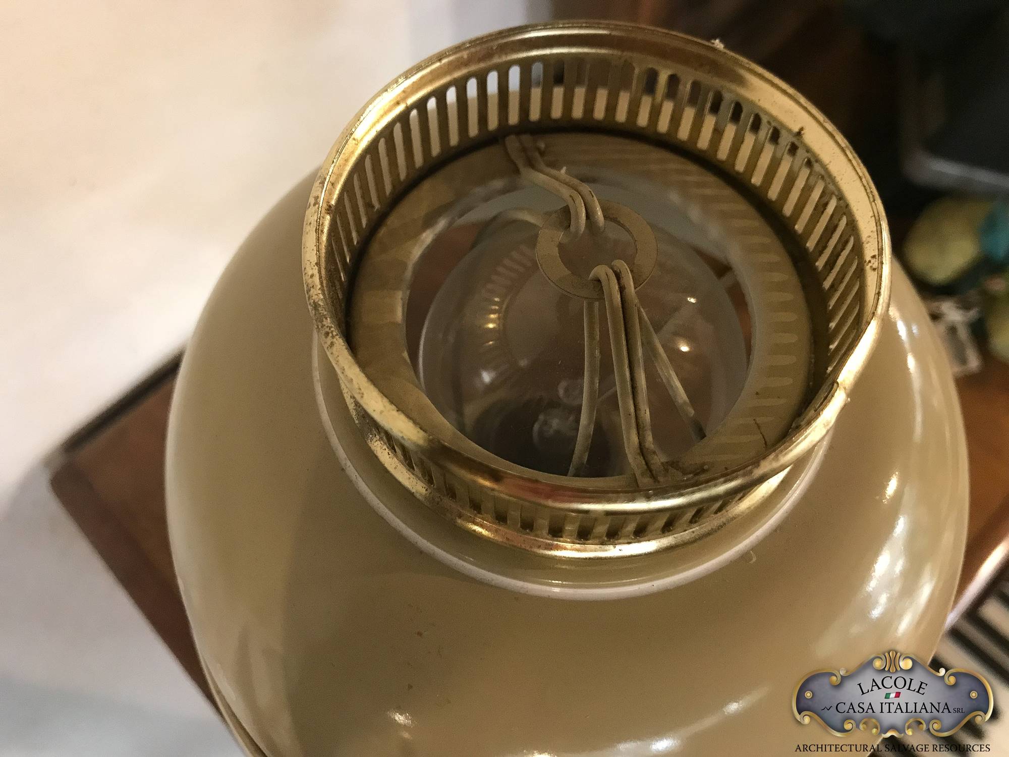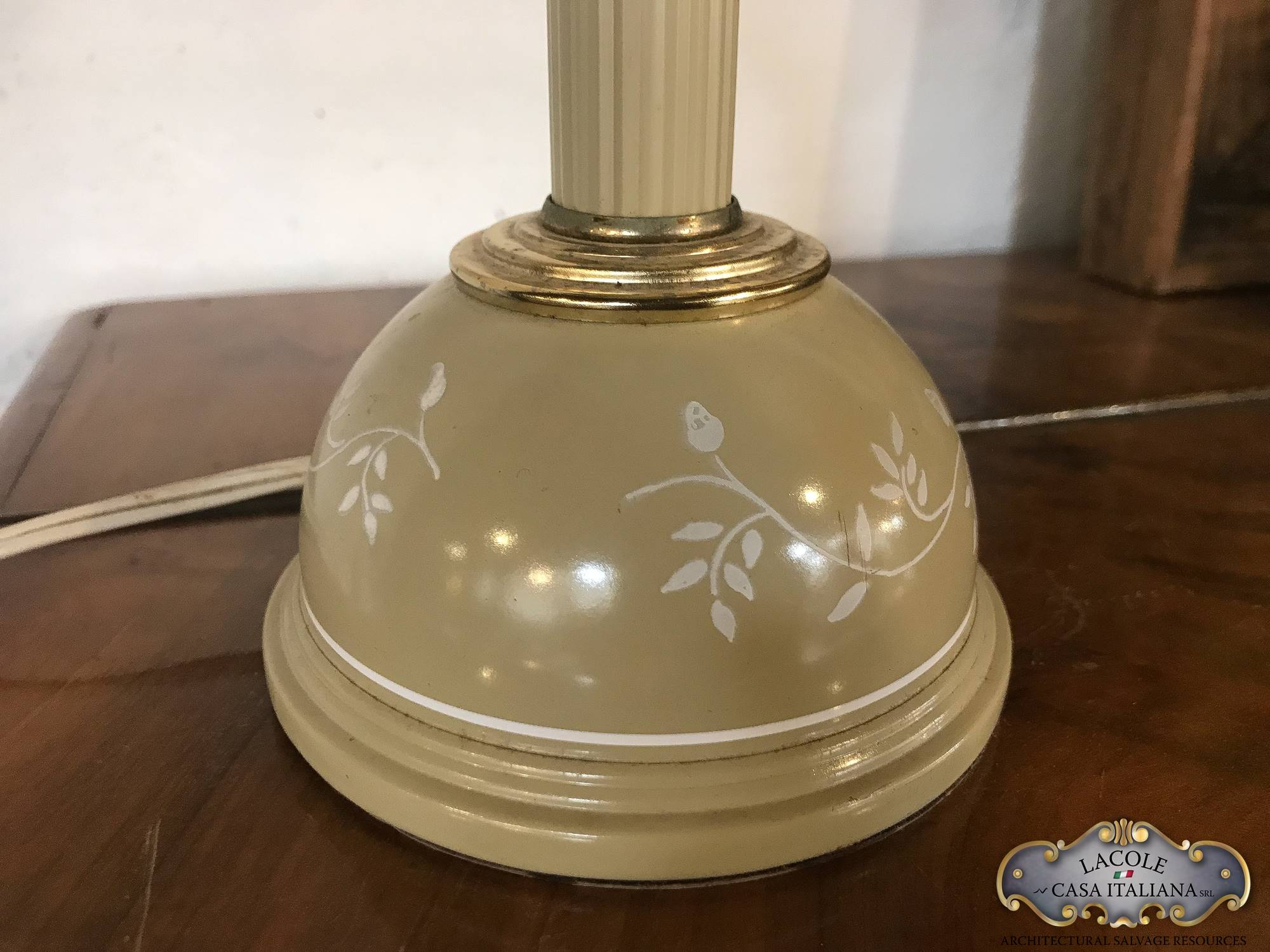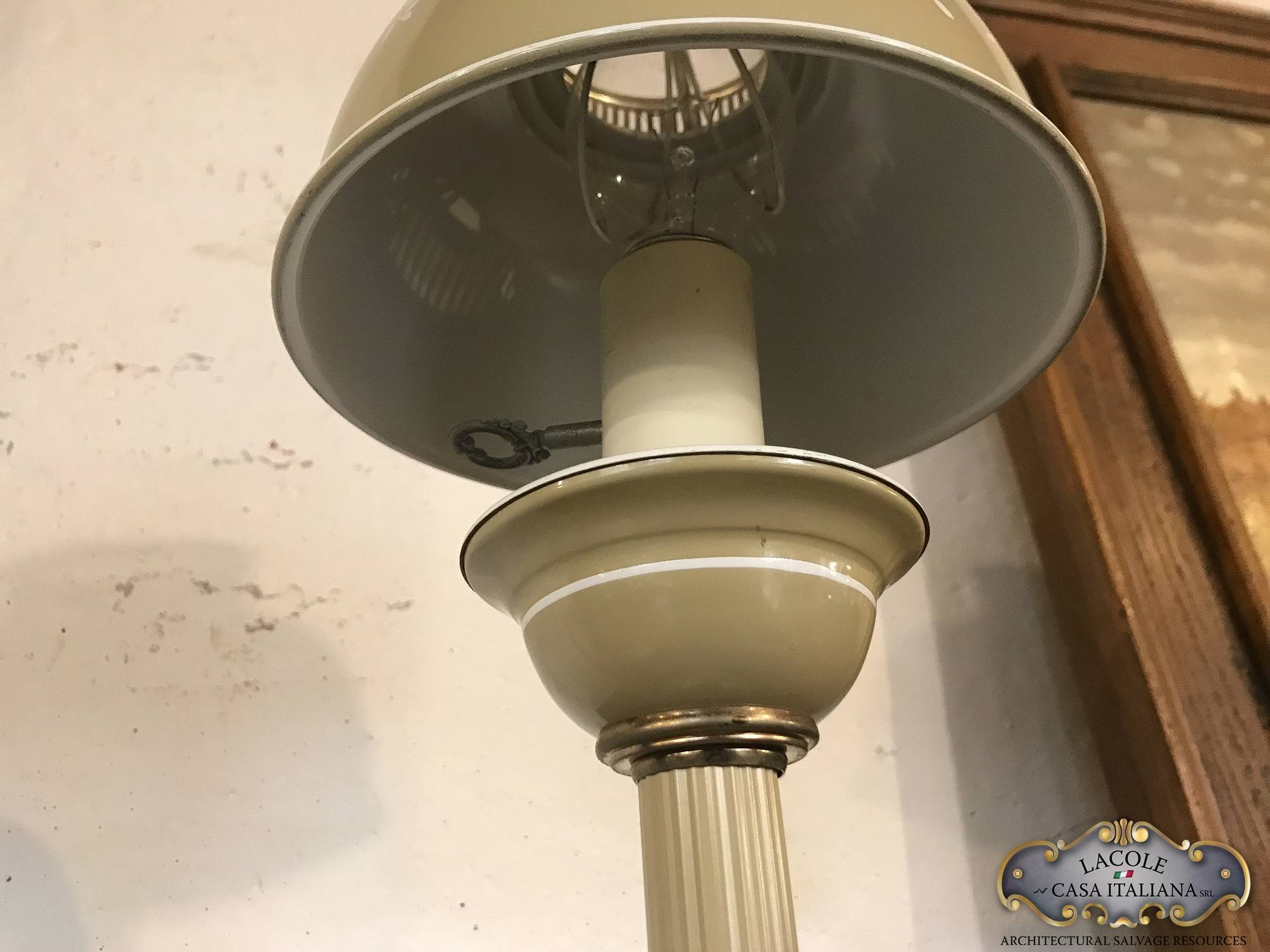 Lampada da studio in metallo laccato e decorato, inserti in ottone, Anni ’60.