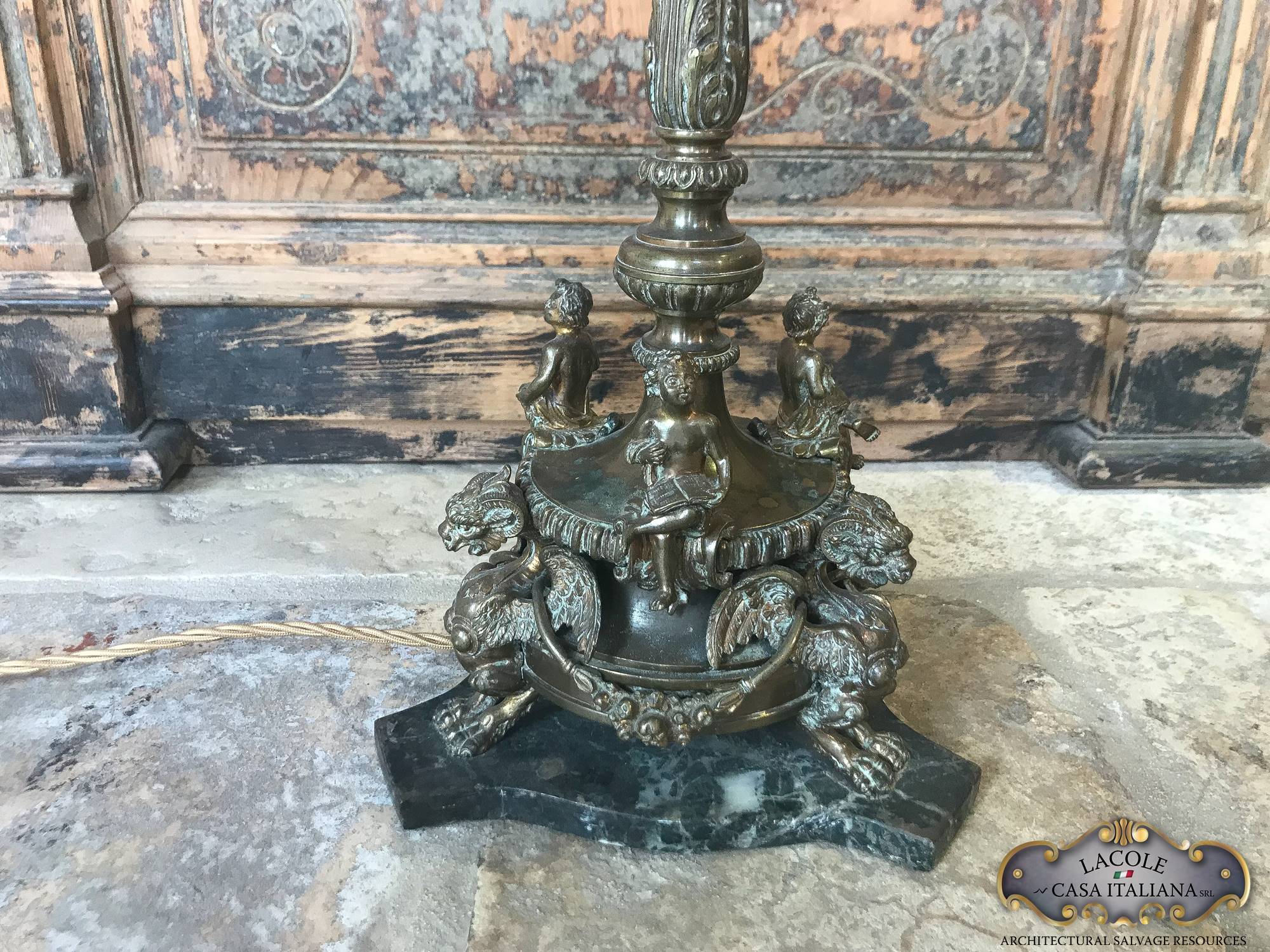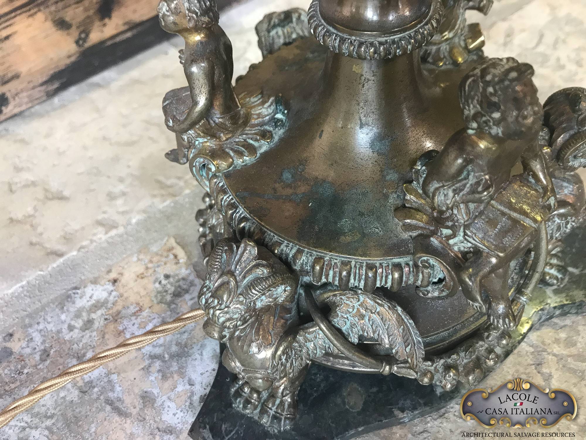 Vecchia lampada in metallo, con base in marmo. Cappello originale.