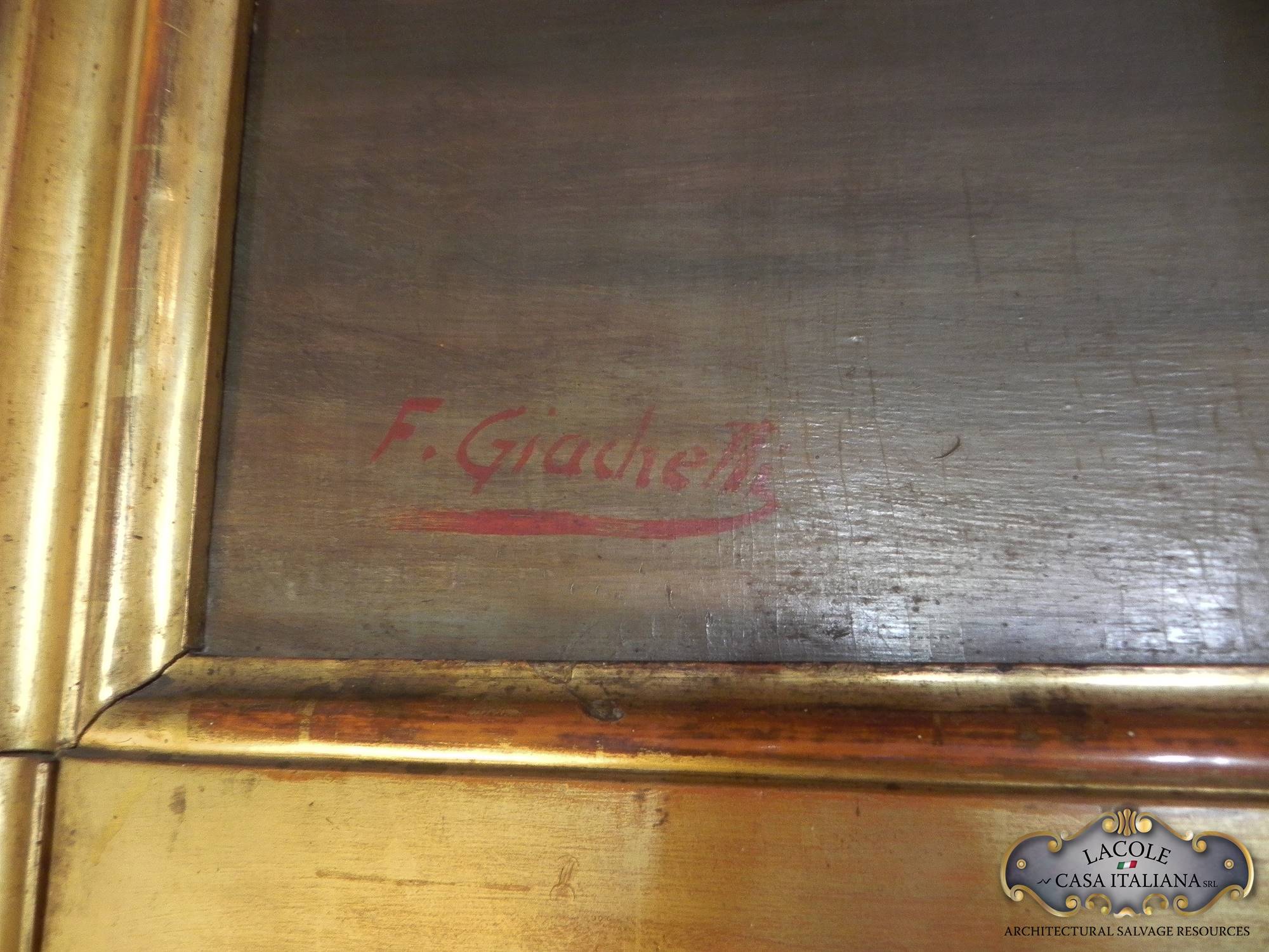 Antico quadro olio su legno, risalente al 1800. La cornice è in legno intagliato e oro.