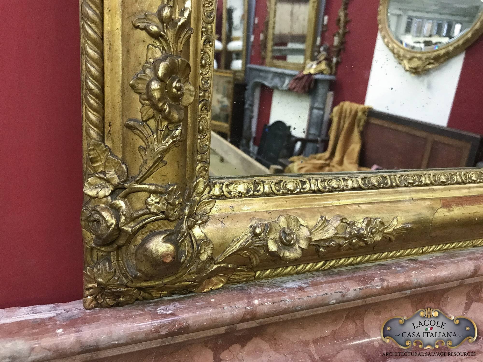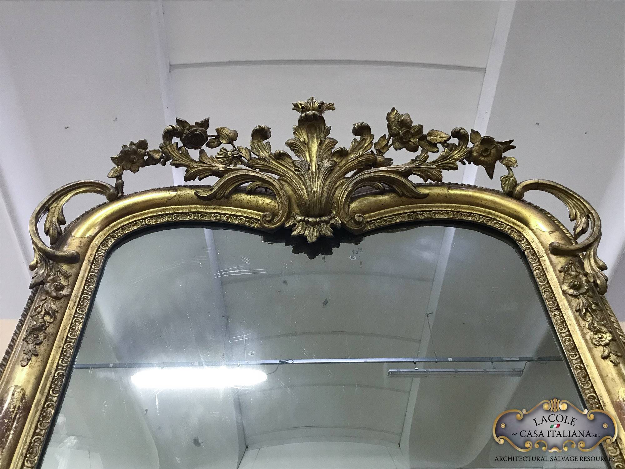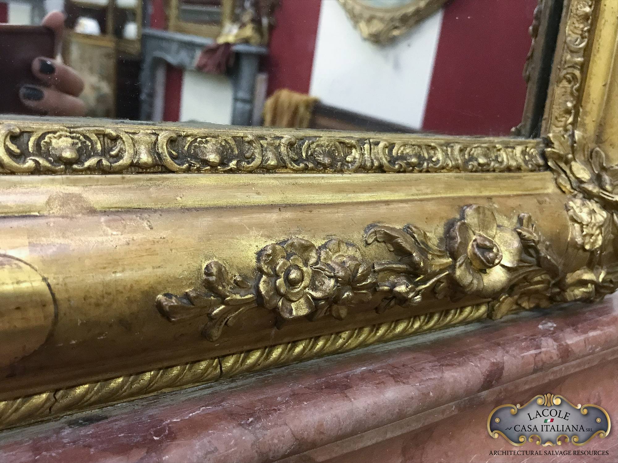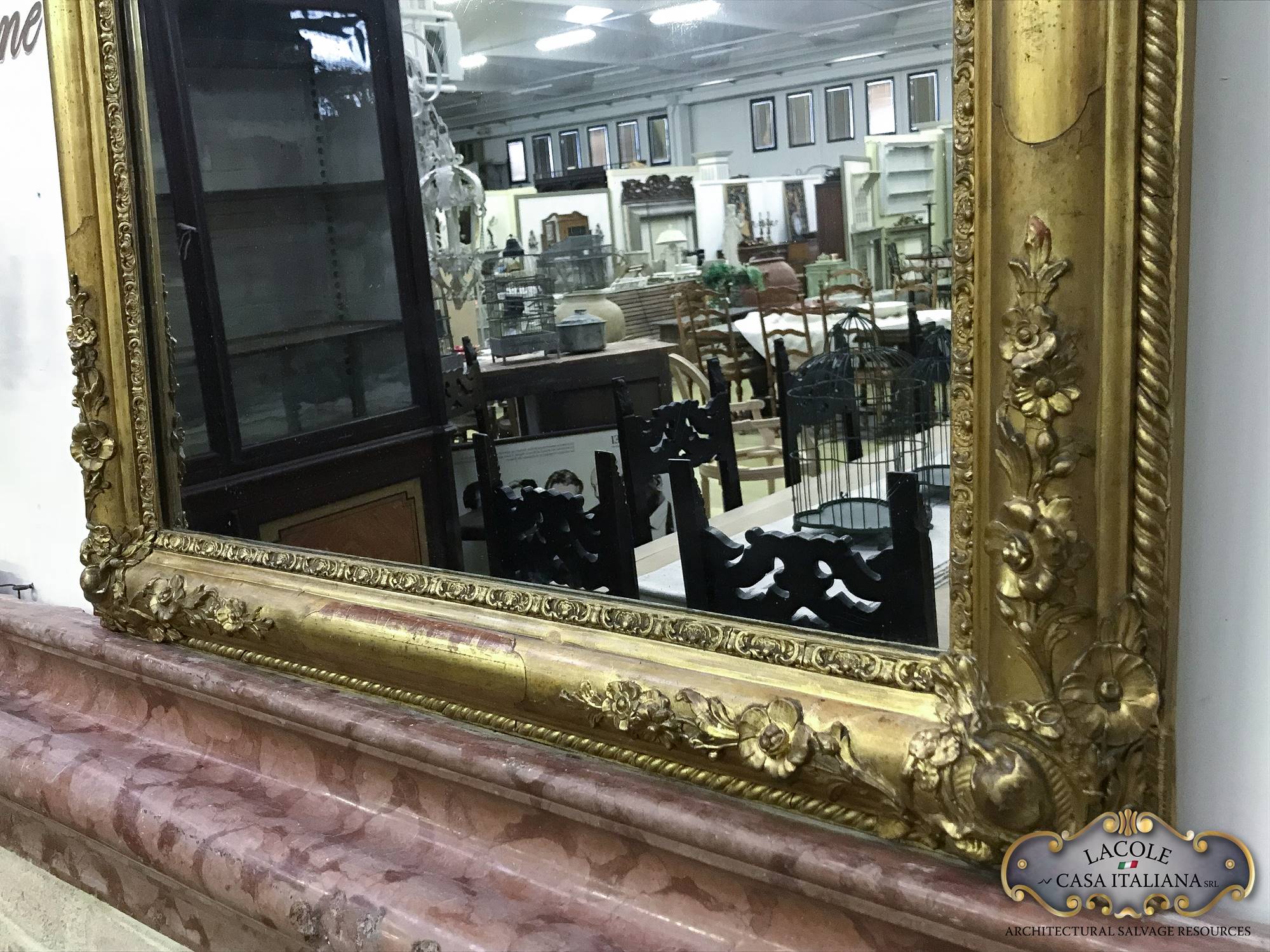 Antica specchiera restaurata, epoca 1800, realizzata in legno pastiglia e foglia oro.