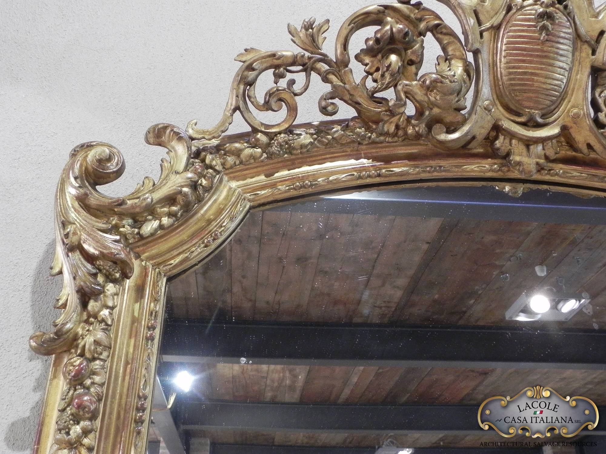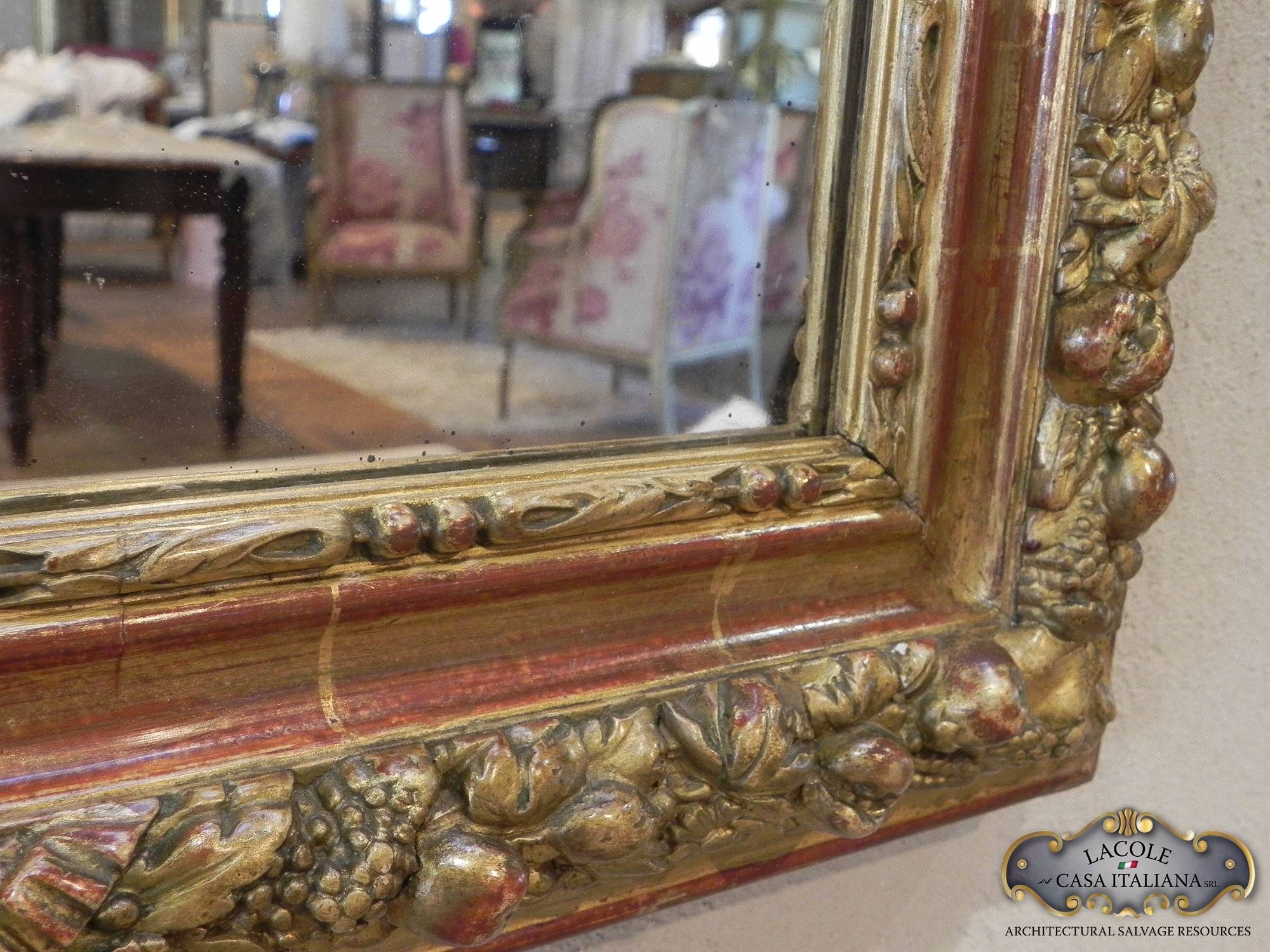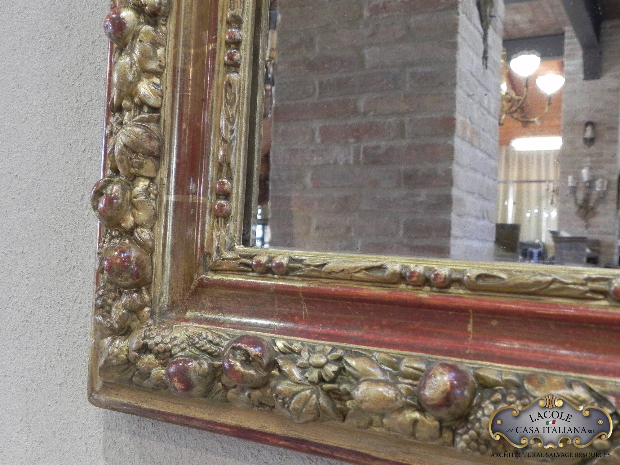 Specchiera antica con cornice in legno dorato a foglia oro. Epoca metà 1800.