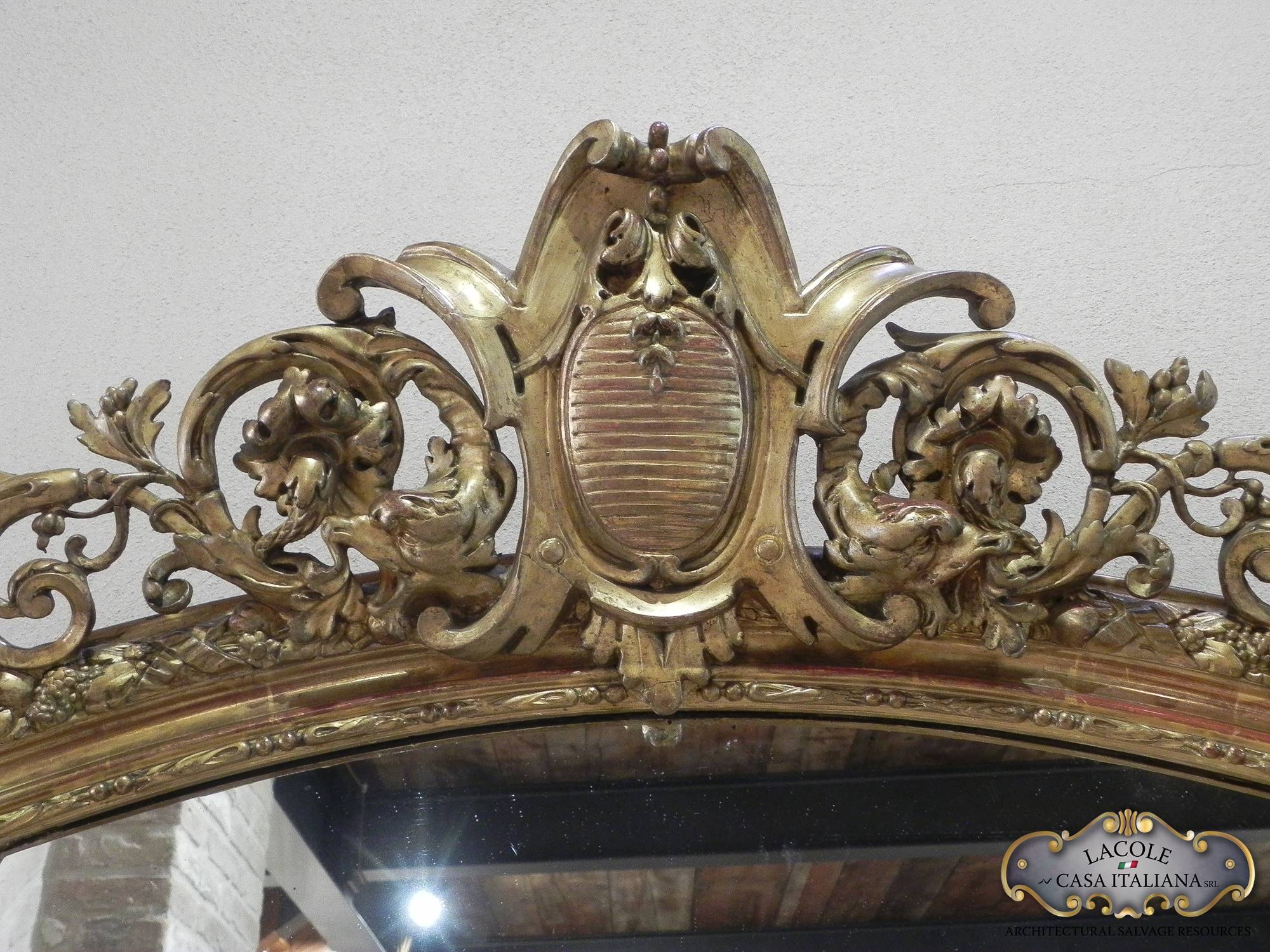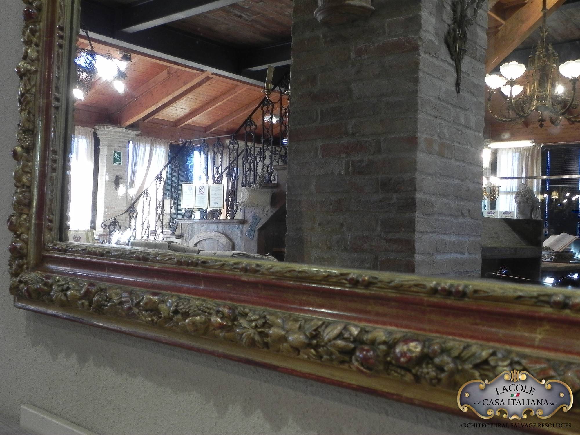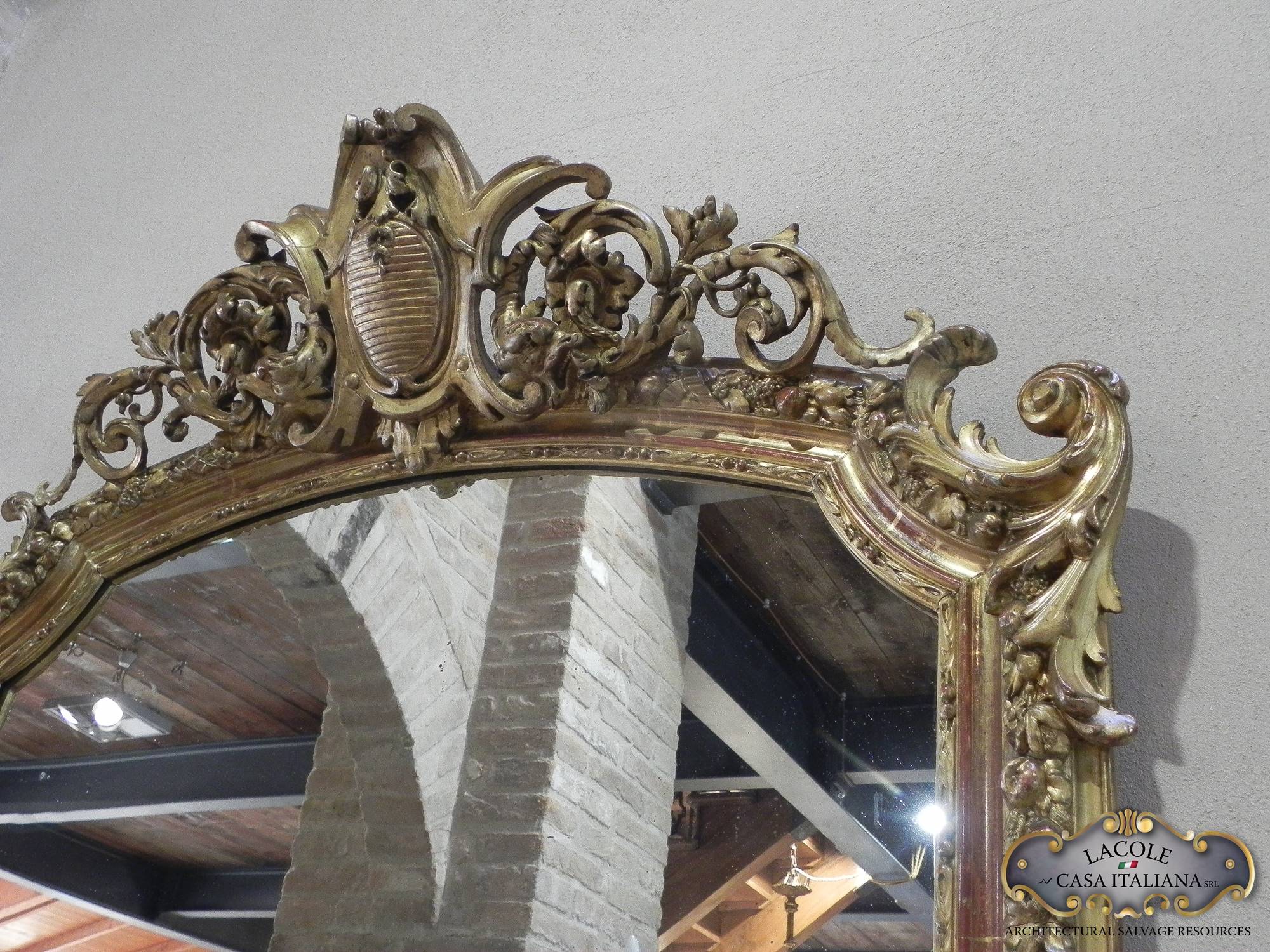 Specchiera antica con cornice in legno dorato a foglia oro. Epoca metà 1800.
