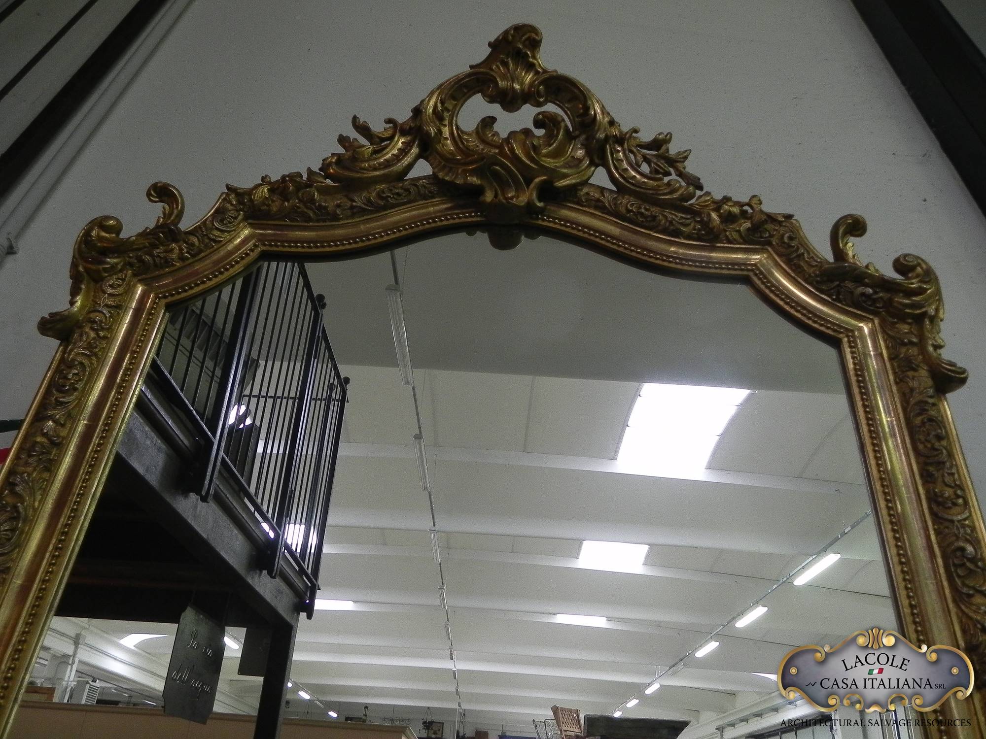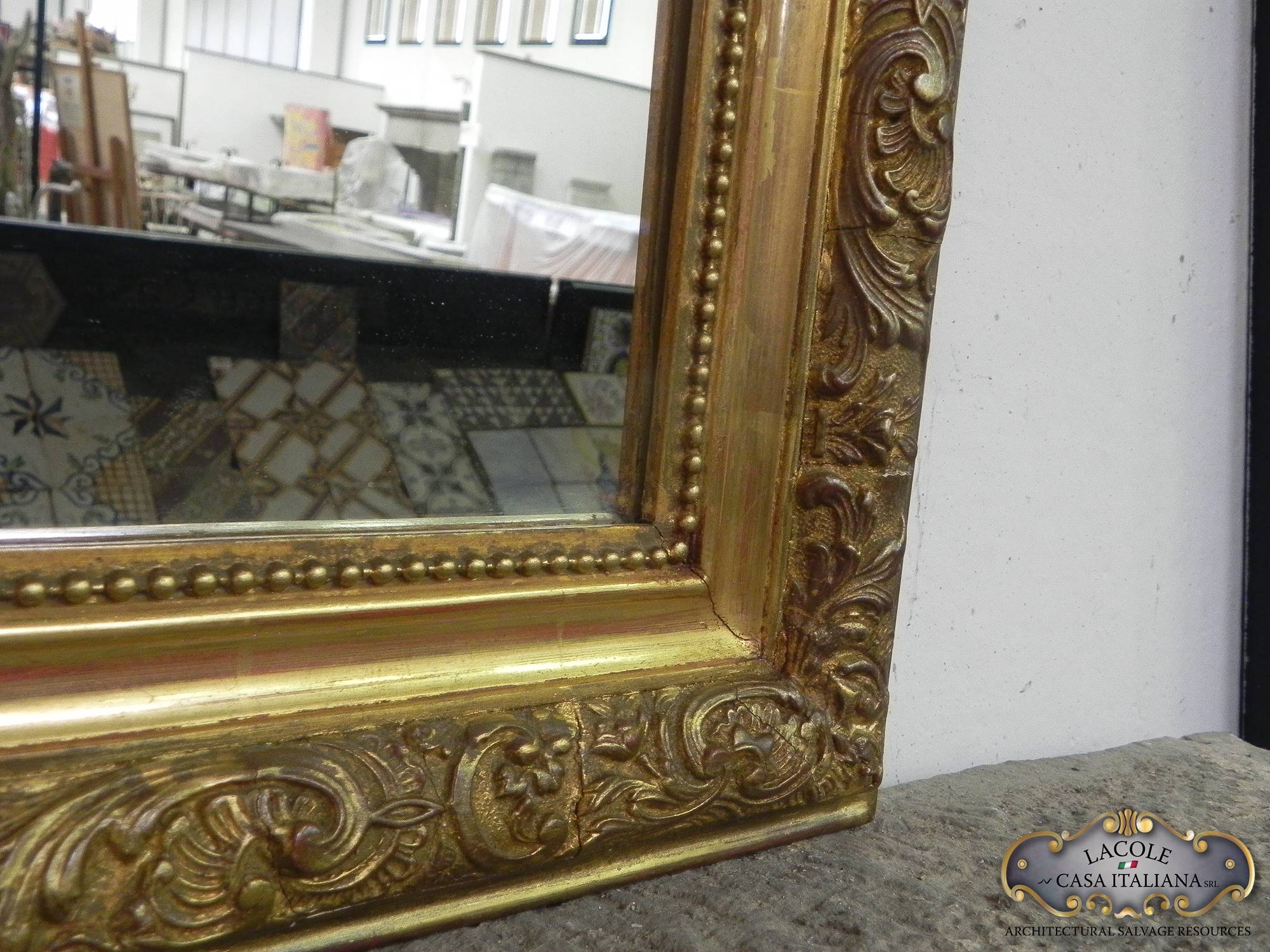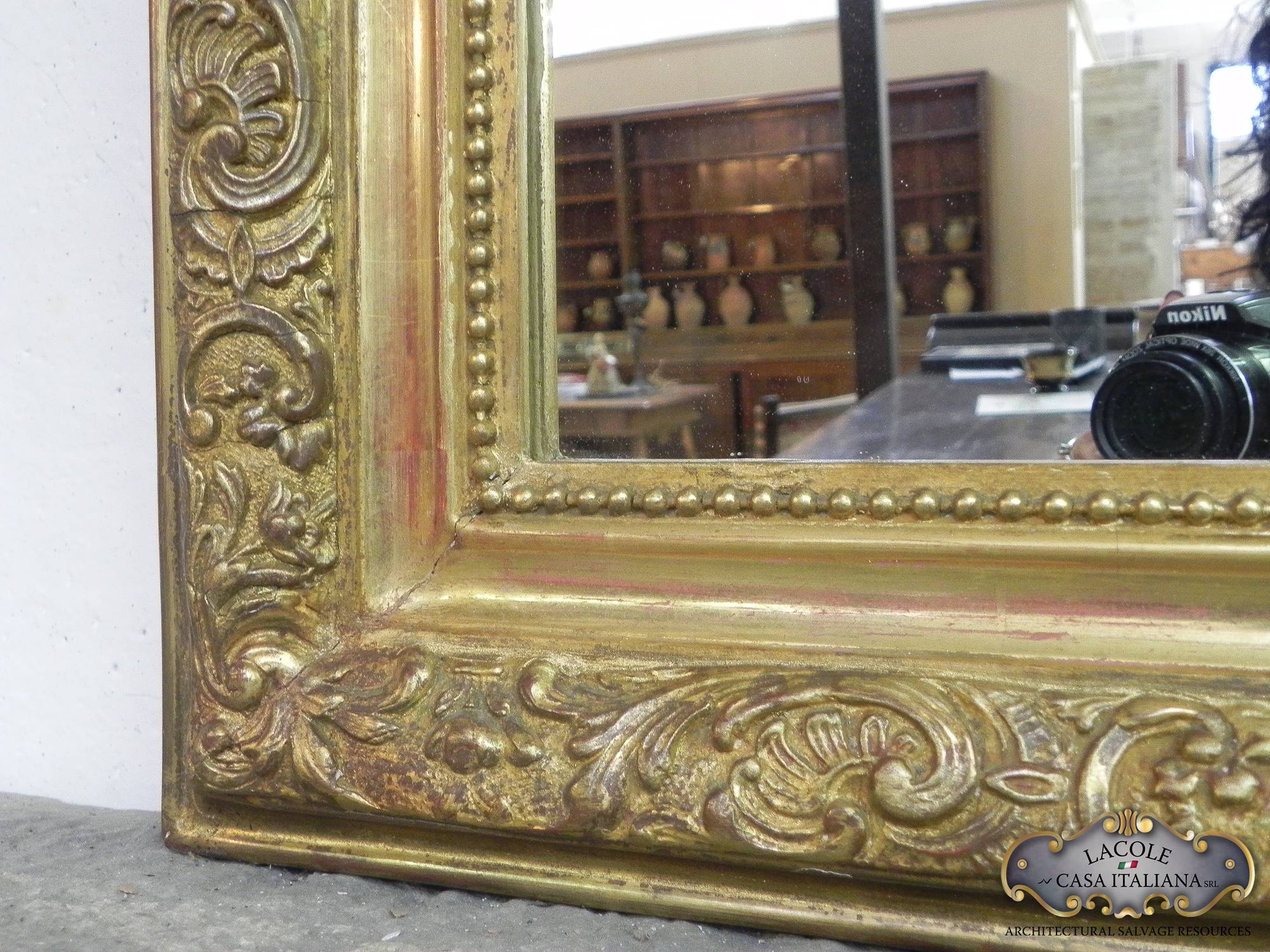 Specchiera antica realizzata in legno e pastiglia dorati a foglia oro, risalente alla metà del 1800.