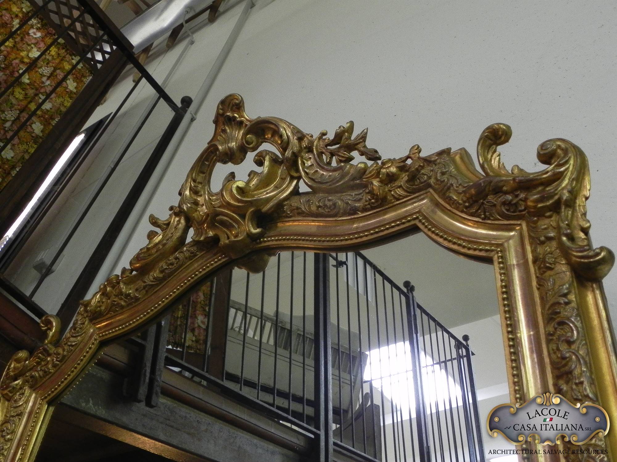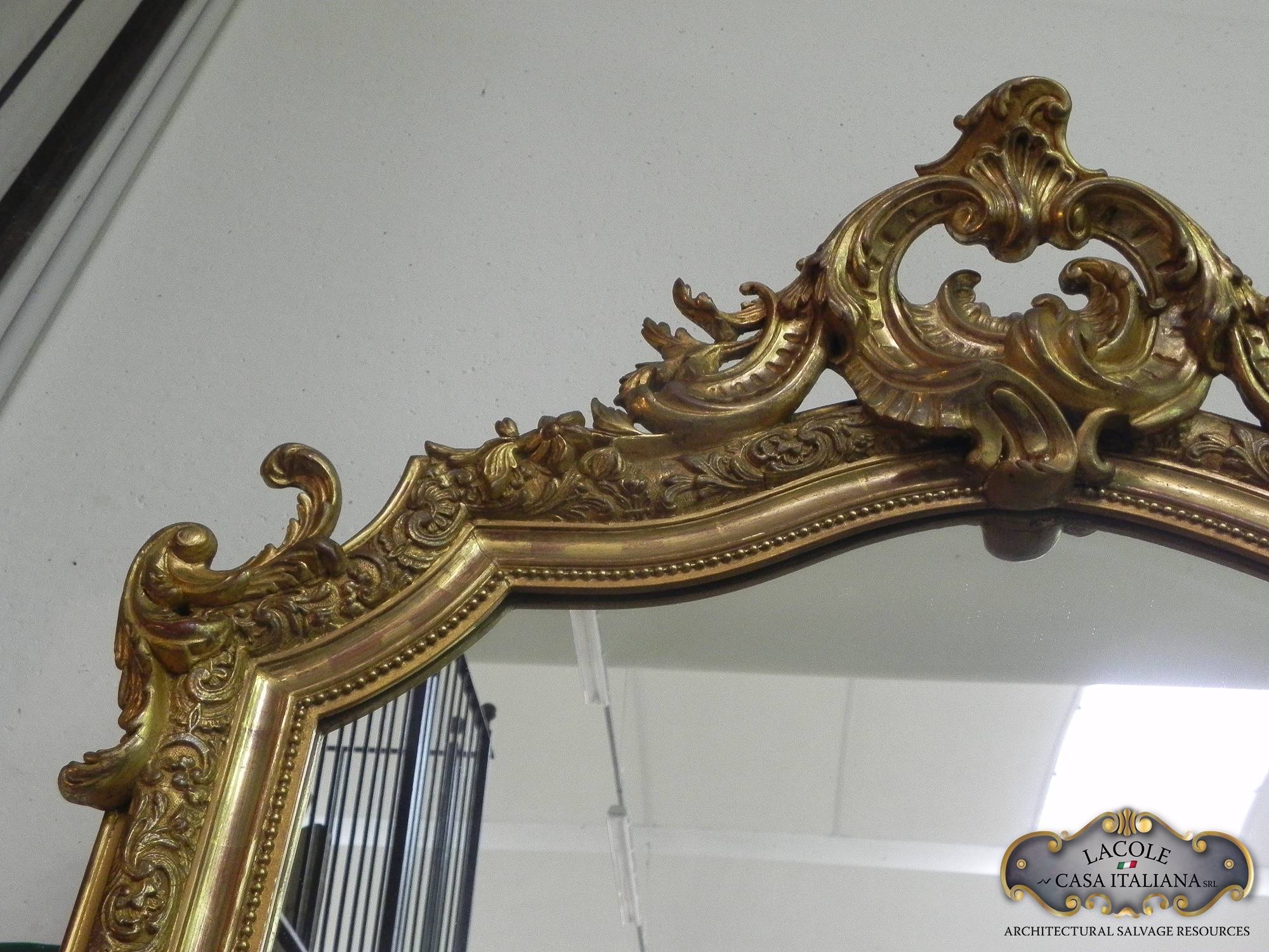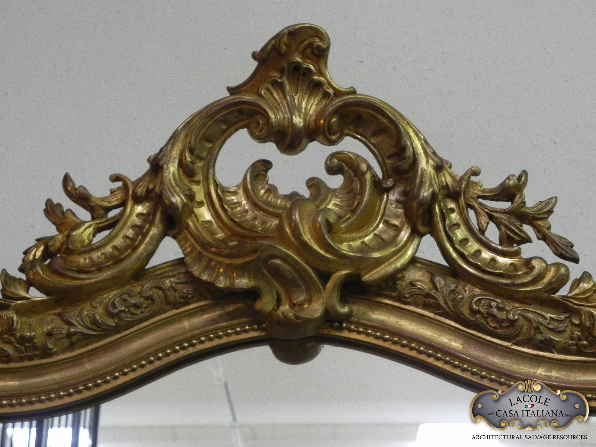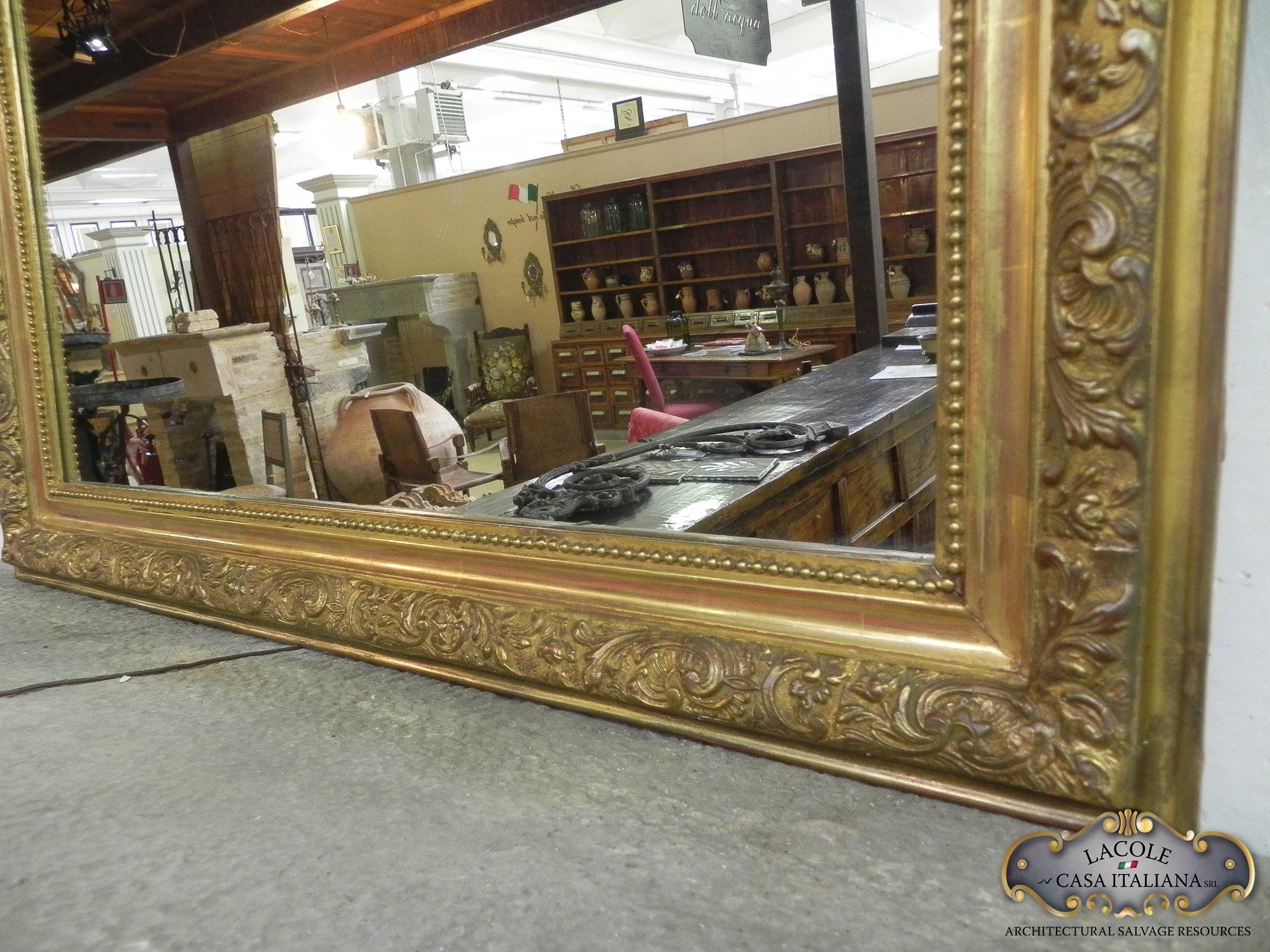 Specchiera antica realizzata in legno e pastiglia dorati a foglia oro, risalente alla metà del 1800.